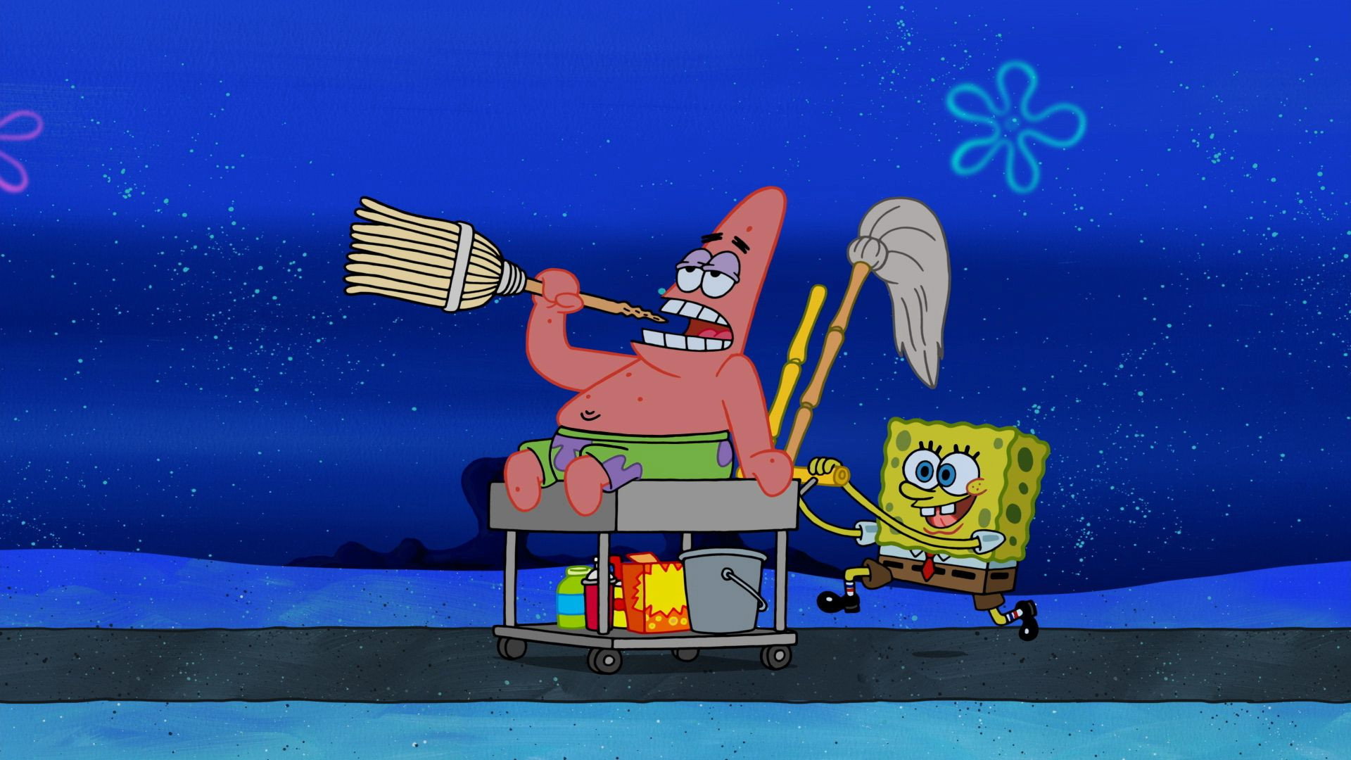 After spilling a milkshake during a delivery, SpongeBob vows to return and clean the entire building.