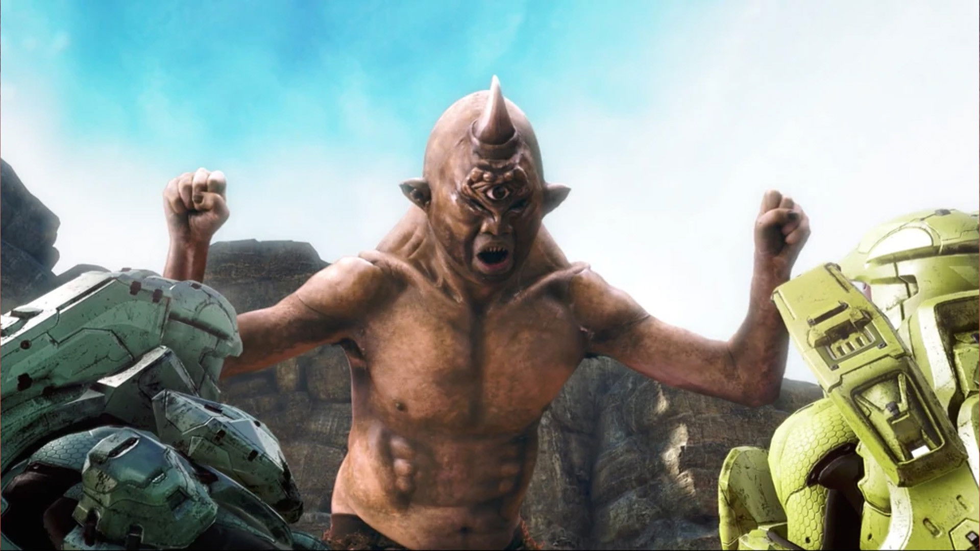 Two of the Reds and Blues engage in mortal combat against King Atlus' champion. Huggins says hi.