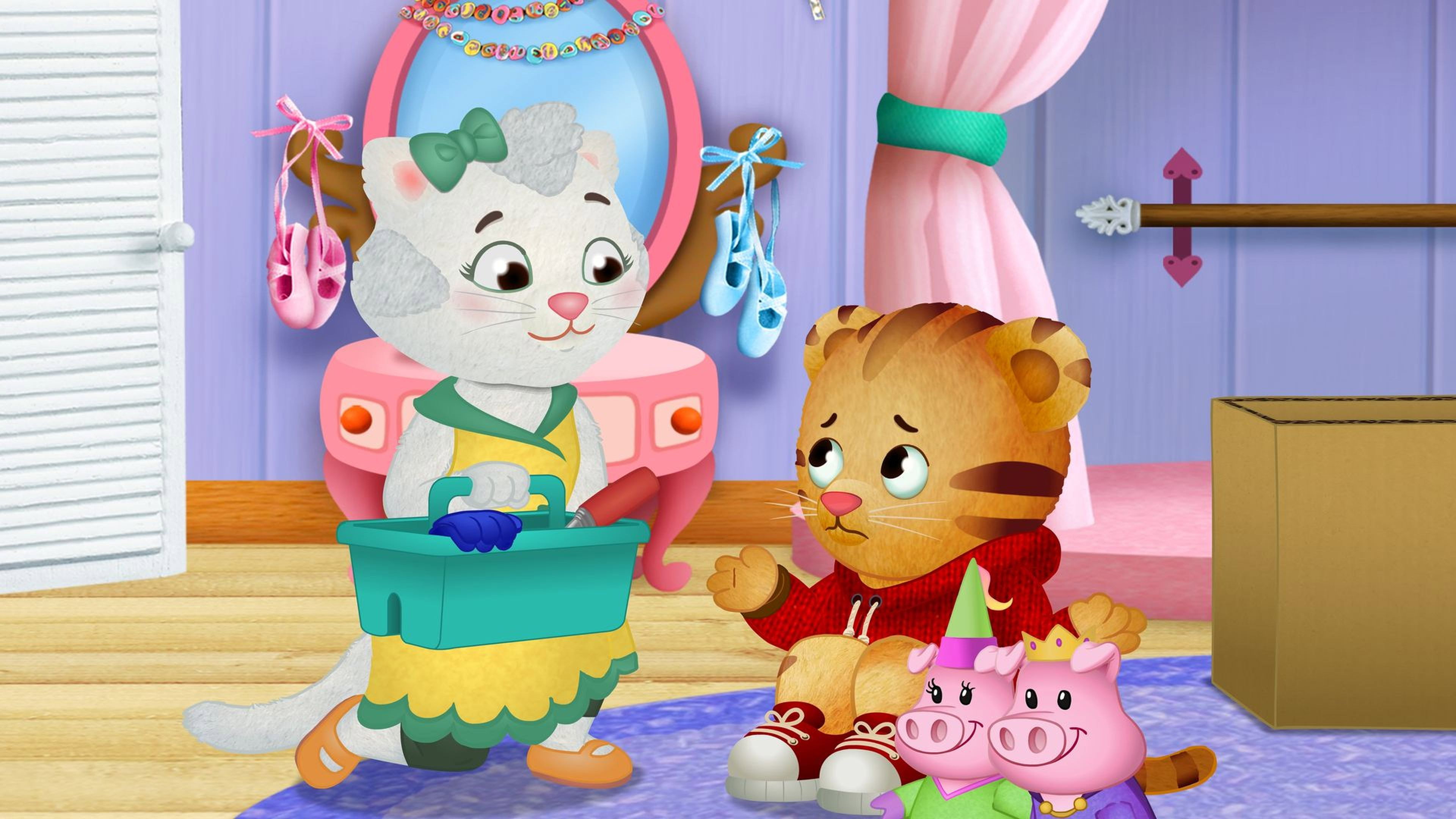 Daniel is playing at Katerina's house and wants to put on a show, but Katerina isn't listening and keeps playing her own way. When Henrietta shows them that they can stop and listen to each other, they come up with a grr-ific new way to play together.