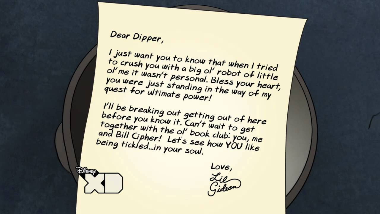 Lil Gideon writes to Dipper to offer up an apology...or not.