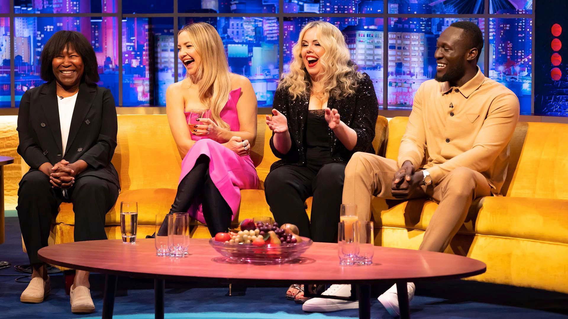 Jonathan's guests this time are one of the biggest acts in the country right now - Stormzy - Golden Globe-winning Hollywood star Kate Hudson, and the pioneering Joan Armatrading.