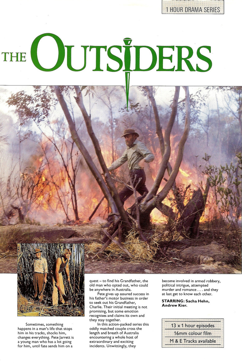 THE OUTSIDERS was the name of an Australian-German co-production which was made in Australia in 1976. It starred Andrew Keir as Charlie Cole and German actor Sascha Hehn as Pete Jarrett. It also featured other prominent Australian actors including John Jarratt of Wolf Creek fame, Wendy Hughes, Leonard Teale, Ray Barrett, Peter Cummins of Sunday Too Far Away, John Meillon of "Crocodile" Dundee fame, Megan Williams of The Sullivans fame, John Ewart, Judy Morris, Vincent Ball of A Town Like Alice, Jason Donovan's father Terry, Serge Lazaraff of Cash and Company fame, Peta Toppano, and David Gulpilil. The series was shot in English and Sascha Hehn was dubbed by Australian actor Andrew Harwood .