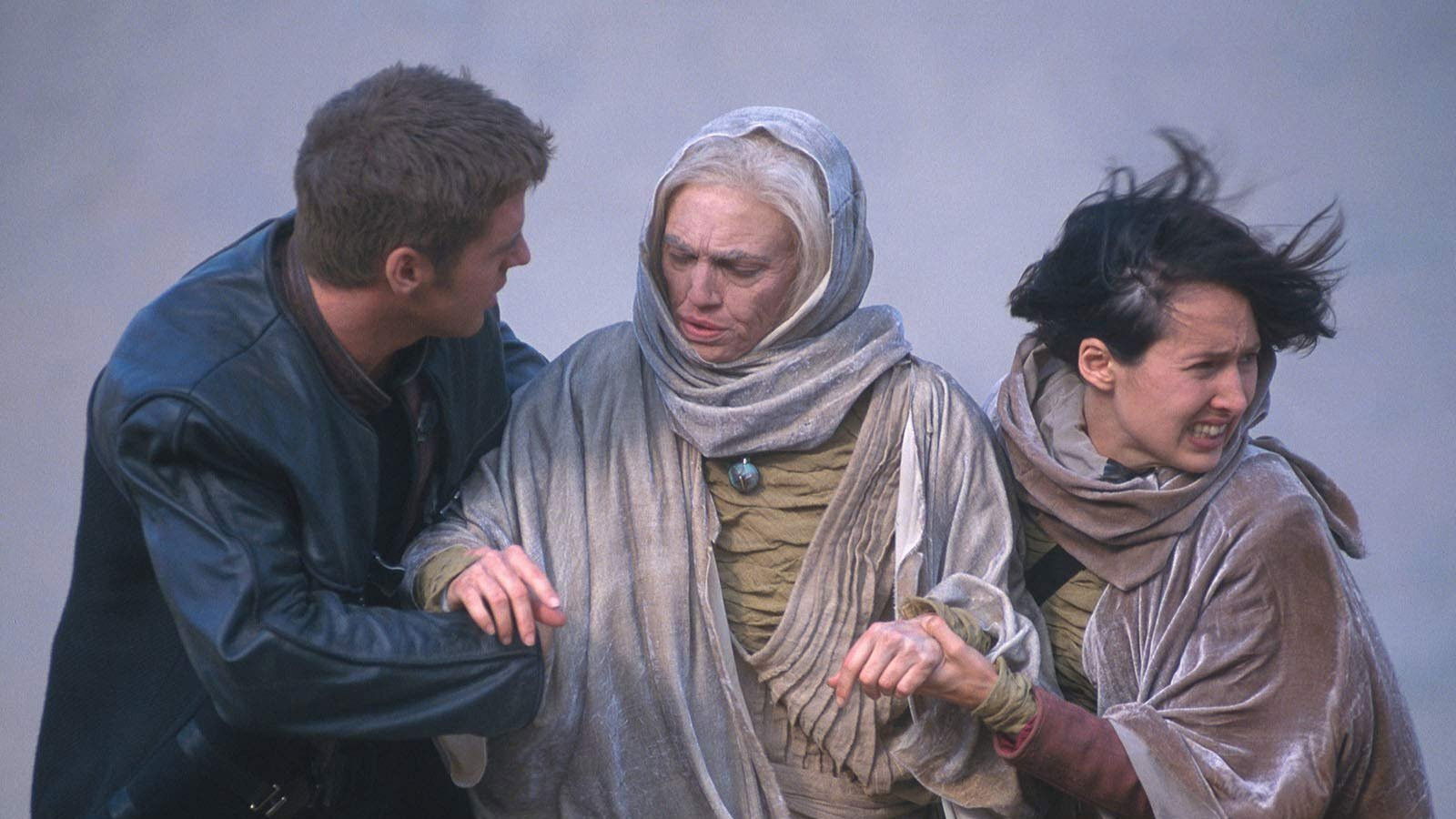 A temporal distortion traps Aeryn and John on a planet's surface, where they live out the rest of their lives -- while Moya remains trapped in orbit, experiencing only hours. Stark returns to the ship with news of D'Argo's son.