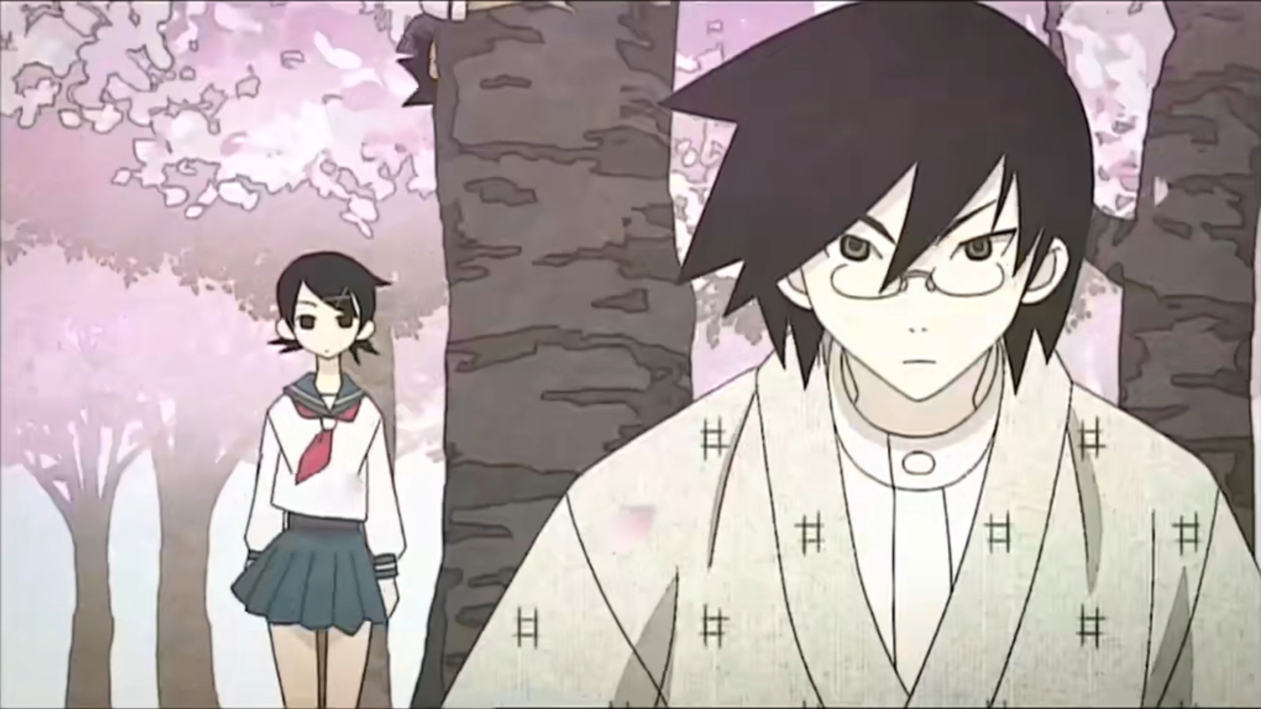 Whilst complaining about how people use poetic words that make you skeptical about them, Nozomu gets thrown into a card game by Rin in which excessive writing is applied to their names. As Chiri complains about the leap seconds added at the new year, Nozomu considers there might be leap people who multiply unnoticed. Chiri is suspected of being a leap person and is enlisted into a parody of the Blue Man Group (in Japanese, blue (ブルー) and leap (うるう) have similar pronunciations). Whilst Nozomu sees Houjoue, a buddhist holiday, as a day for overlooking things, Kafka believes it should be a part of daily life, and introduces him to family that ignores life.