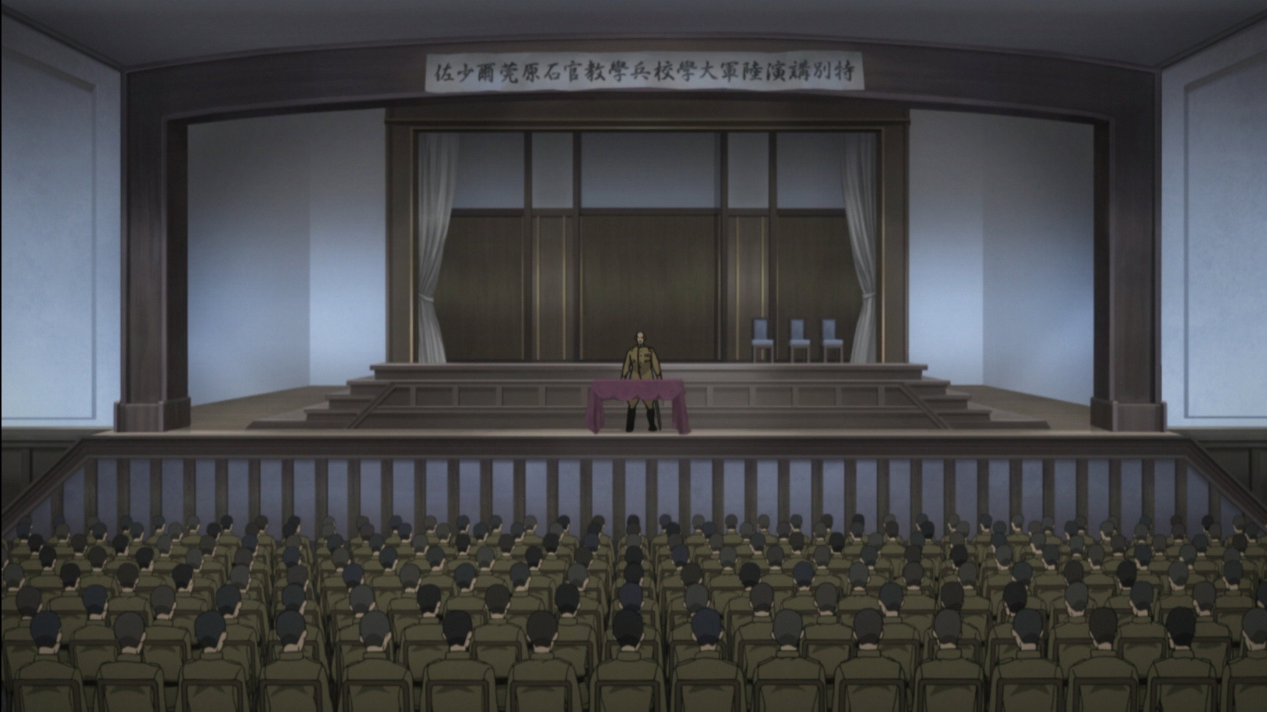 While Sakurai is displeased with Aoi's actions regarding the prophetess, he allows Aoi to remain in the group. Yukina hesitantly shares the vision Isao presented to her with the others, describing the vision as "hell". During the group's next mission to find evidence that the Chinese are smuggling in weapons from Germany at the Dalian port, Kazura is ambushed by a group of Westerners. When Isao comes to his aid, he reveals to Kazura a secret base run by Ichinose, where nuclear weapons are being developed and shares with him his ideals, inspired by the events of the First World War that concluded with the signing of the Treaty of Versailles on June 1919. Upon returning to the port, Aoi and Natsume set a trap for Isao. A conflicted Kazura, recalling the speech that Kanji Ishiwara gave when he was in military school, chooses to save Isao and teleports away, leaving Aoi, Yukina, and Natsume shocked by his actions.