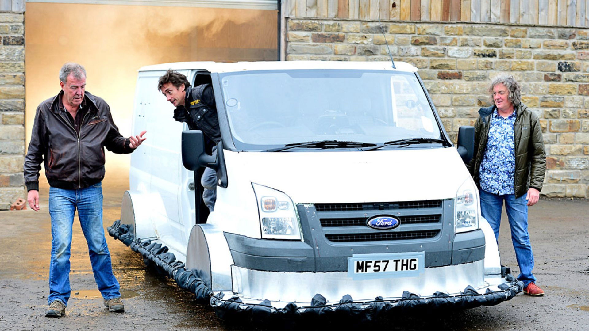 Jeremy Clarkson, Richard Hammond and James May bring relief to flood-stricken areas of Britain by building a car that can turn into a hovercraft. After a bumpy start, the presenters demonstrate the brilliance of their creation with an eventful journey down the River Avon. Also in this show, Jeremy is on the track in the insane Mercedes SLS Black and the 739 horsepower SLS Electric, while Hollywood star Hugh Jackman is the star in the Reasonably Priced Car.