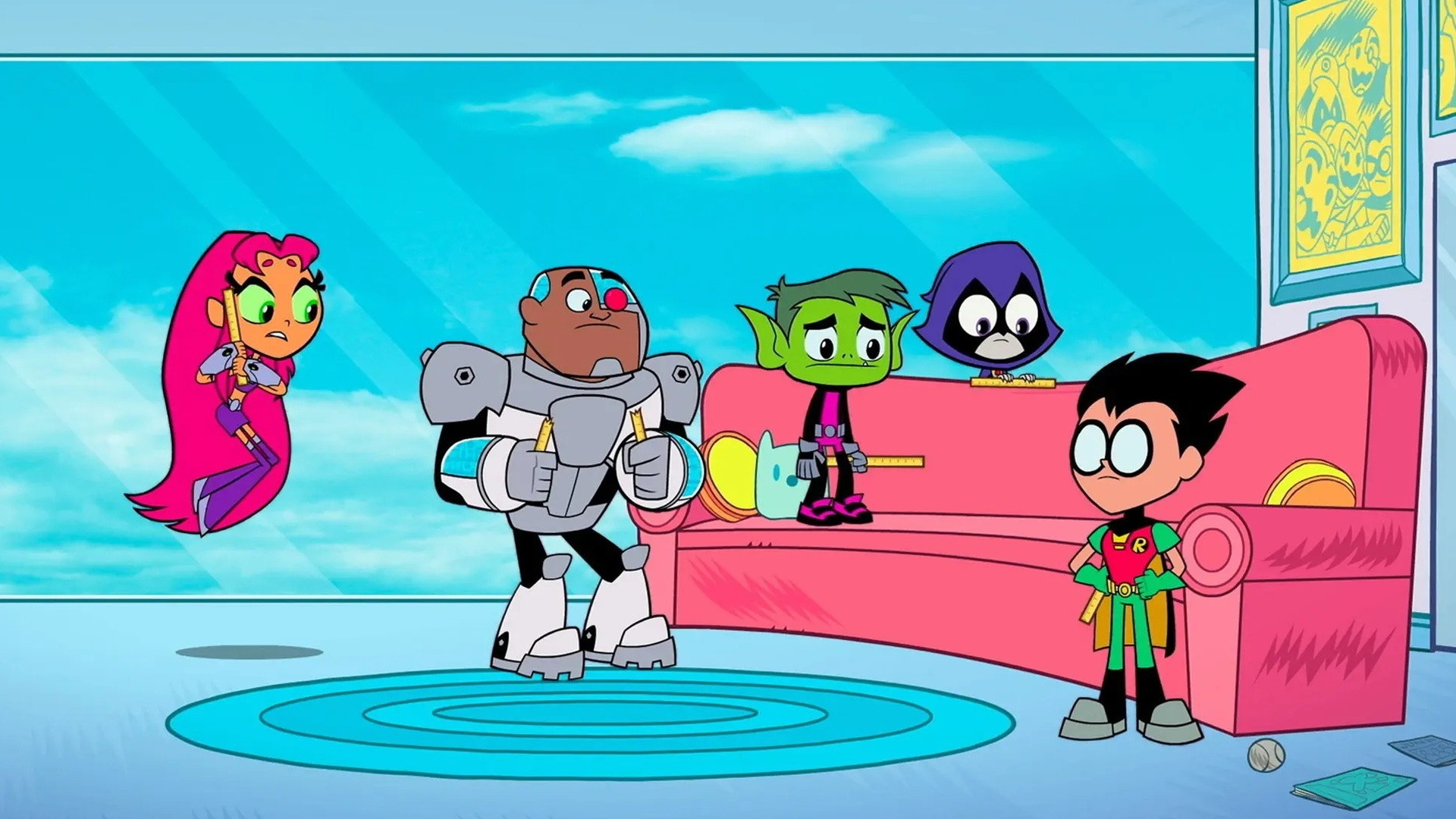 Robin teaches the other Titans how to properly use a ruler.
