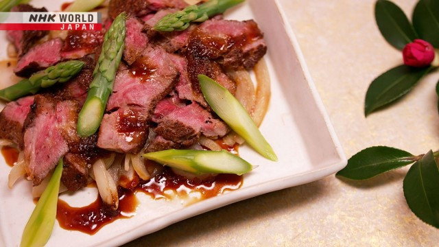 Learn about Japanese home cooking with Master Chef Saito, based on traditional Japanese cooking techniques! Featured recipes: (1) Ginger Beef Steak (2) Uzaku — Eel and Cucumber.