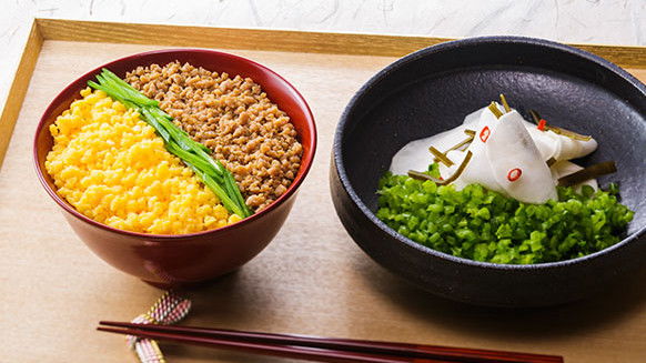 Our theme for this episode is making soboro, or tiny seasoned bits. Chef Saito will be showing us how to make soboro that come in very handy for home cooking or bento lunches. Whether it's the sweet and savory simmered chicken soboro or the deliciously fine scrambled egg soboro, they both go great with fresh snow peas for a beautifully colorful topping to rice. We'll learn Chef Saito's useful techniques and tricks for making soboro, including how to make all of the pieces evenly sized. For our side, we'll be making paper-thin pickled turnip, an elegant Kyoto specialty. We'll teach you everything you need to know to make this traditional and beautiful type of pickled turnip at home.