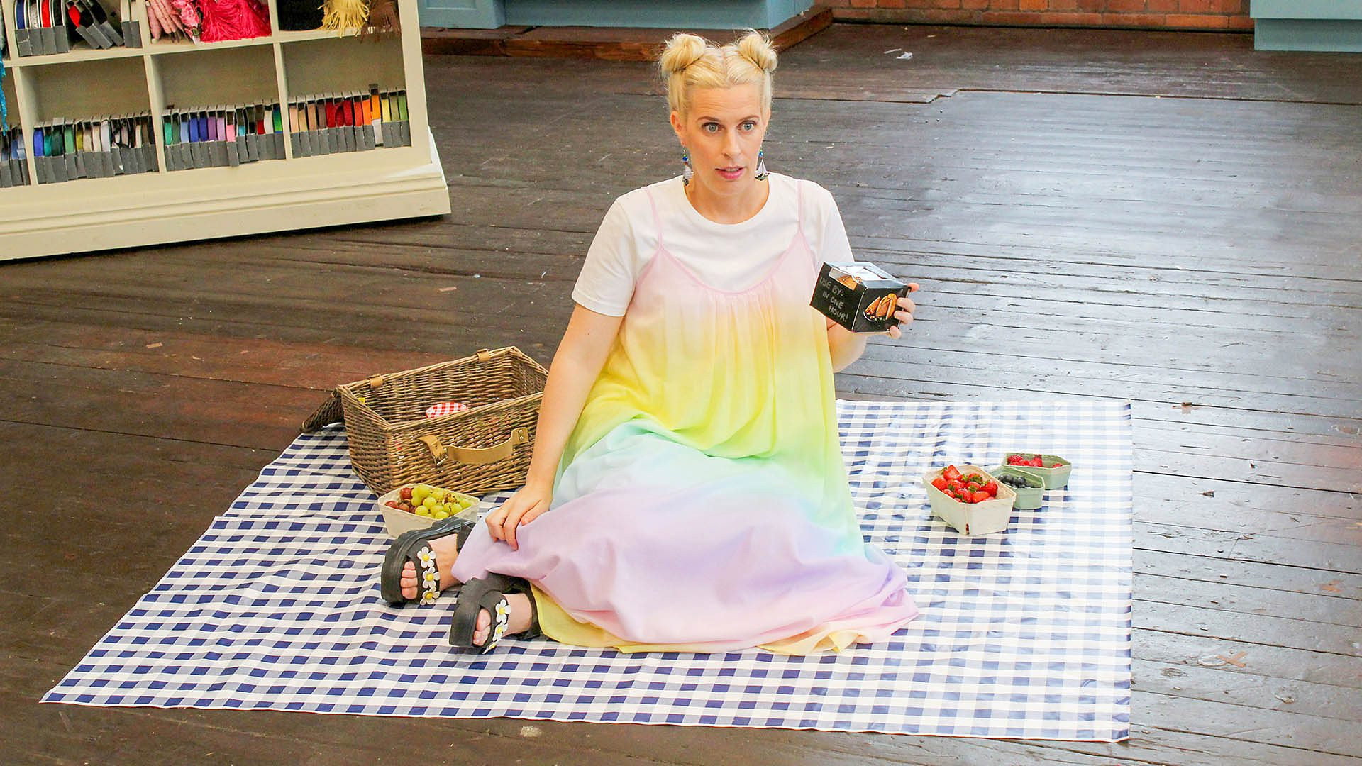 It’s summer week, and the sewers make light and airy outfits, including a summer dress, a creation from old hammocks and a two-piece trouser co-ord for a man or a woman.
