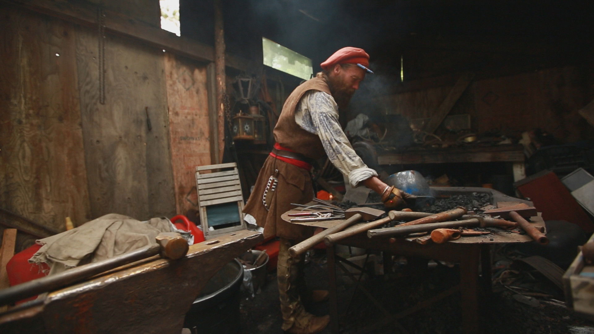 Failed attempts at catching a rabbit; making crawdad traps; using blacksmithing skills.