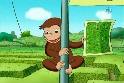 George is an expert at navigating the maze on the placemat at the Y-Go-By Diner, but his skills are put to the ultimate test when the Man with the Yellow Hat takes him to the Annual Amazing Maze Race at Renkins Farm. The Man and George follow their map precisely, but how can they compete with the Quint's computerized navigation device, Bill's system of leaving a trail of corn, and Sprint's speedy disposition? It's not until George gets a bird's eye view of the maze that he is able to line up the landmarks on the map and figure out where to go. But when Leslie the cow eats their map, they need to figure out a more creative way to get to the finish line!
