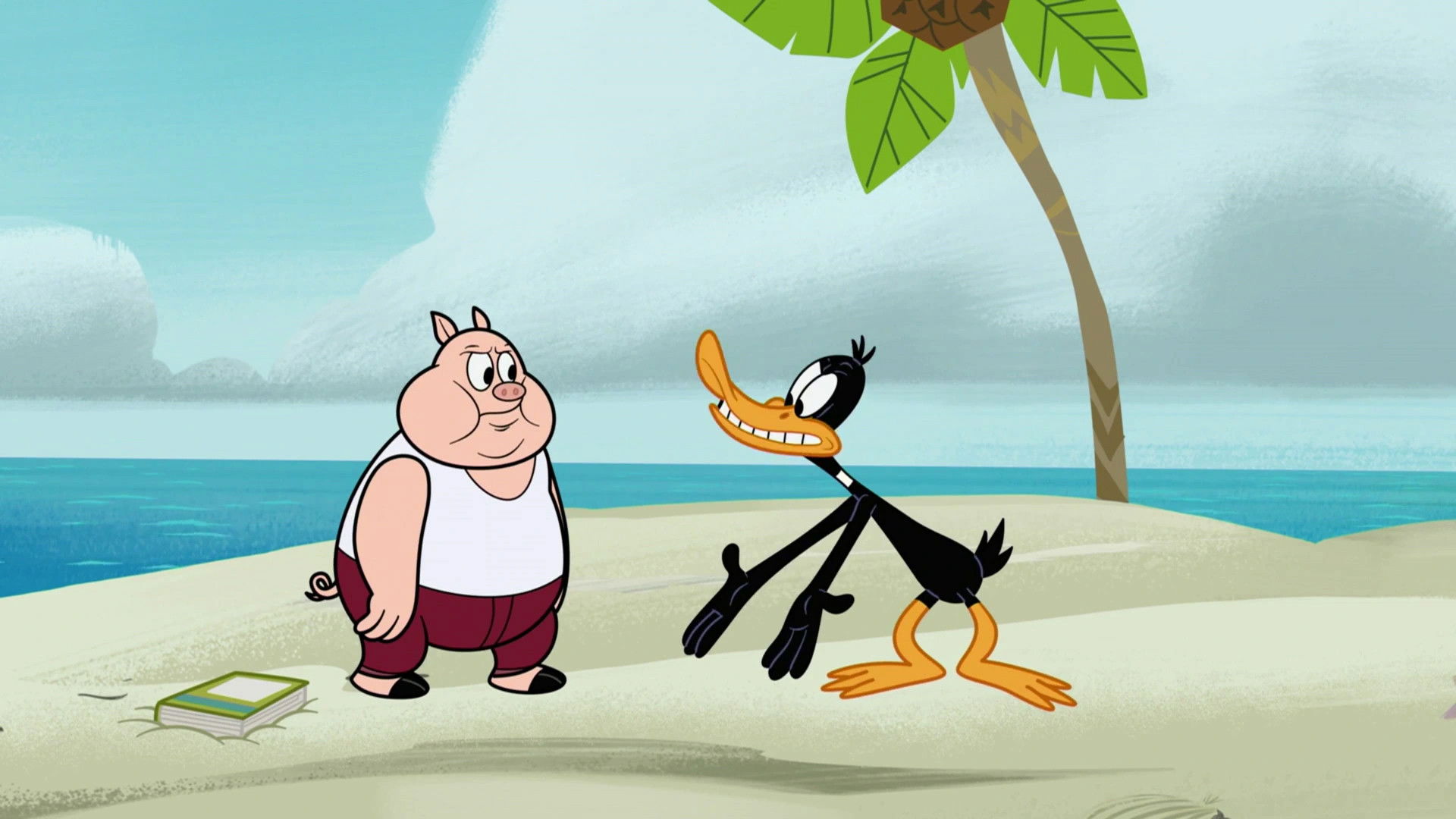 Daffy causes Porky's plane to crash, leaving the two stranded on a deserted island.