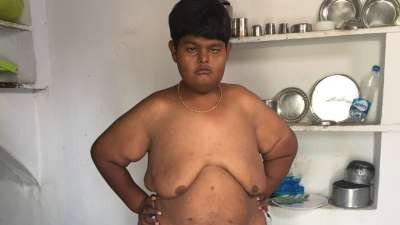 Mahesh weighs 150kg, twice the weight of an average man, due to a syndrome that encourages constant eating. A development in the womb left Christian with no eyes.