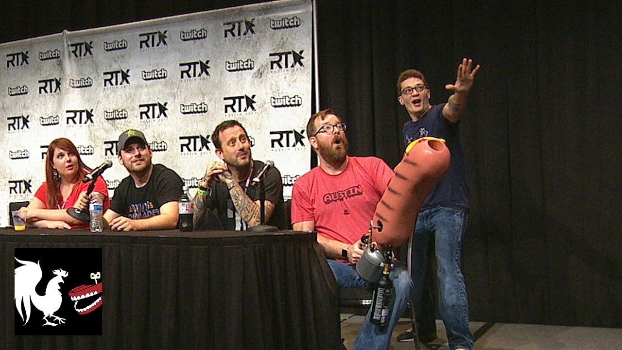 The infamous hot dog t-shirt cannon made the rounds at various RTX panels, pelting attendees with shirts and plushies and nailing Michael in the groin.