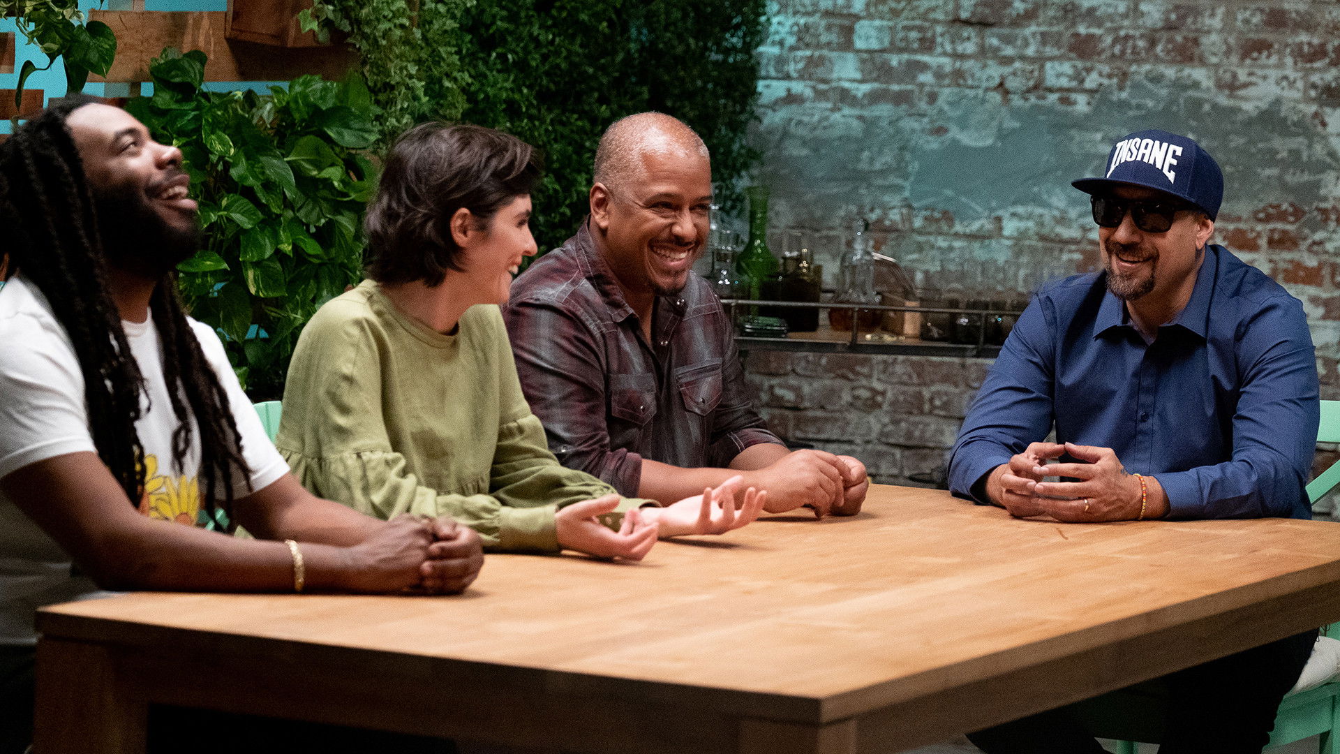 LA chefs Nicole Rucker, Kat Turner and Ria Dolly Barbosa compete in making canna-breakfast for B Real, Vanessa, Miguel and rapper D.R.A.M. Artist Tom Brown infuses tiny waffles.