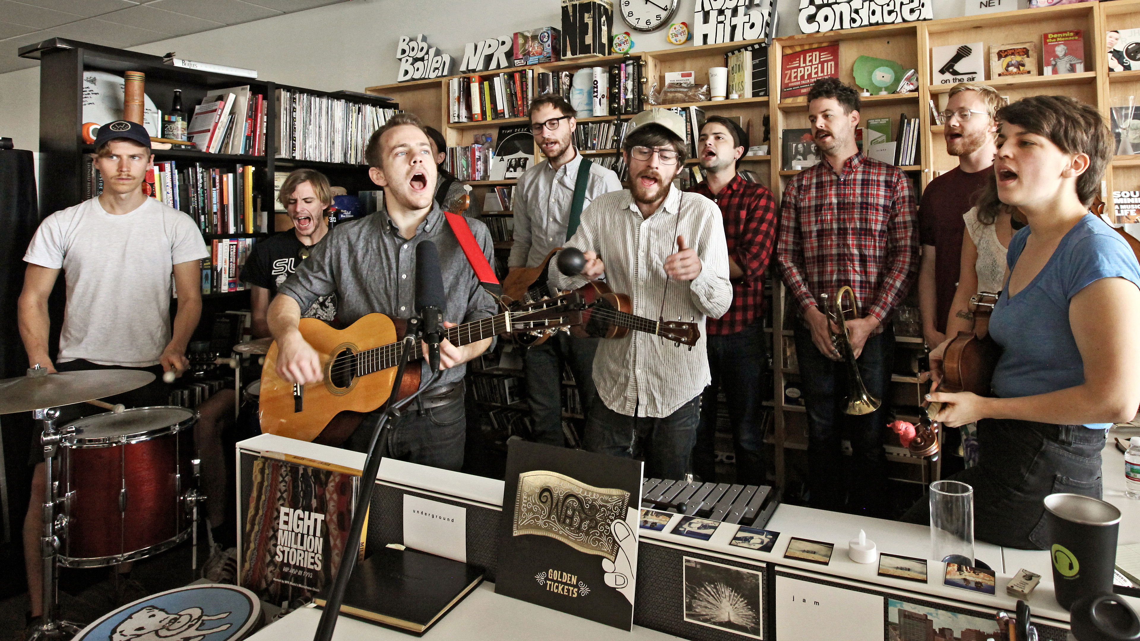 The dozen members of this Portland, Ore. band crammed behind the Tiny Desk for a transcendent set.