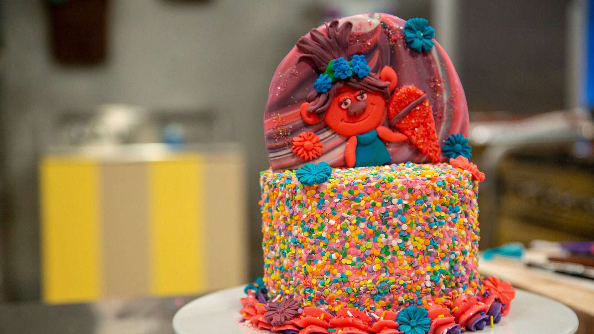 In celebration of the upcoming movie, the seven remaining bakers join the Trolls World Tour and are challenged to make colorful tiny Troll treats. Then the competitors have VIP all-access passes to a Troll rock concert and must create cakes with a musical Troll tribe theme.