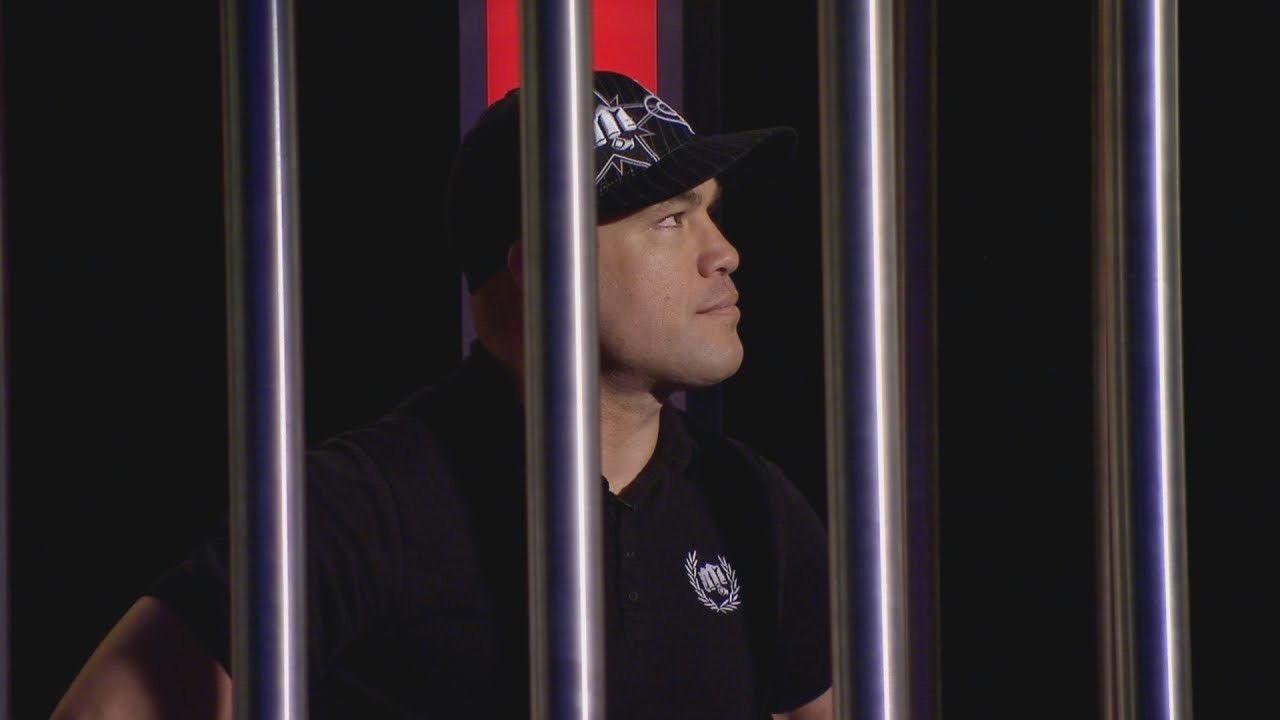 It's the second half of Heat 3 of the PokerStars.com Shark Cage, featuring sporting legends Ronaldo and Tito Ortiz. Right now, the cage fighter is where he belongs: in the cage! No-one has been eliminated yet. But only one player can win a seat in the final, and take a shot at the trophy and a six-figure score.