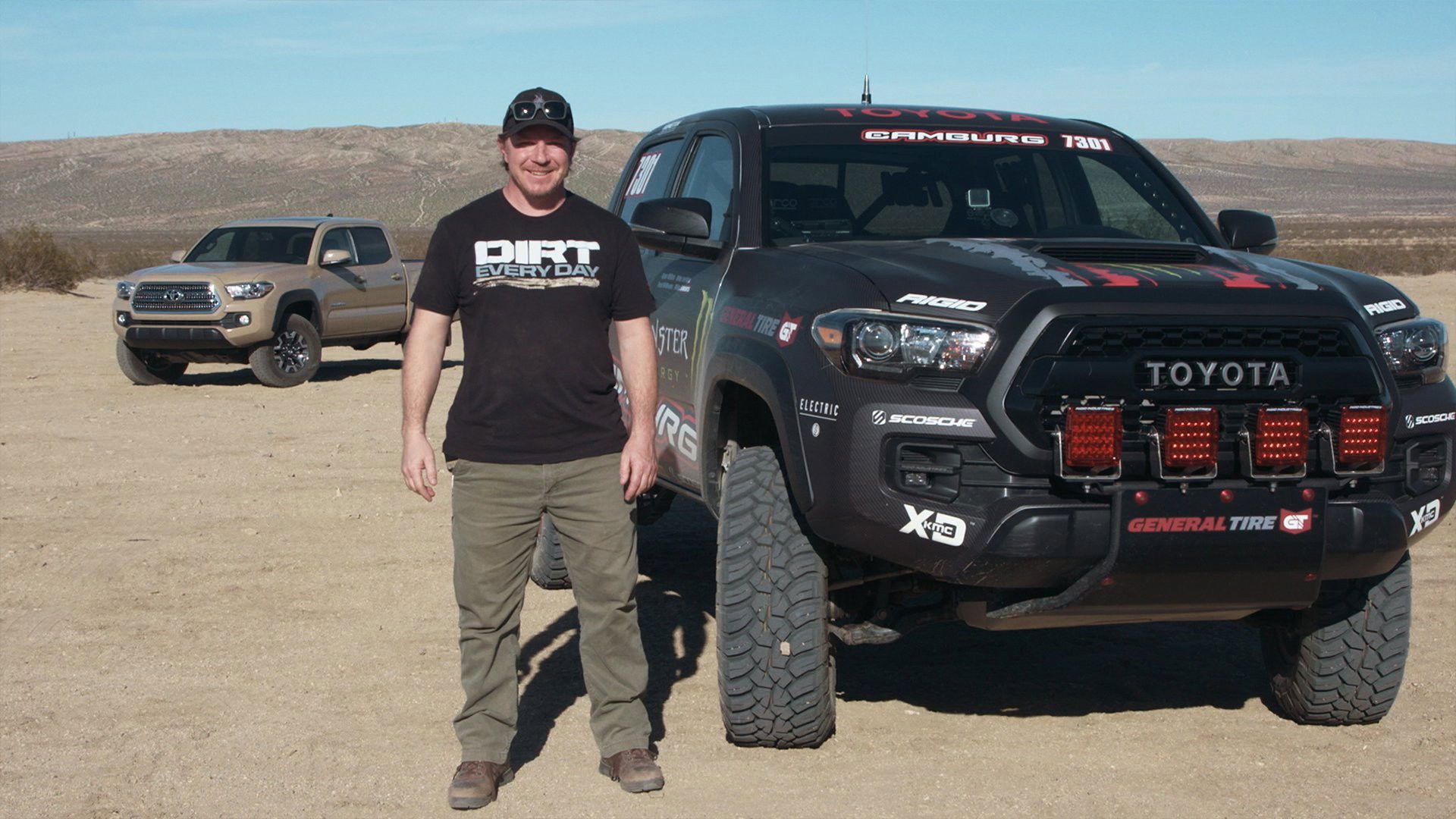 The Toyota Tacoma has a huge following, and the latest version is making a splash amongst off-road enthusiasts, so when Fred Williams gets the chance to join a desert race team for a race in a Tacoma on this episode of Dirt Every Day presented by Tire Rack, he dives in to see how the truck is built. Williams heads to Camburg Engineering to learn how a stock TRD truck is transformed into a safe desert race machine.