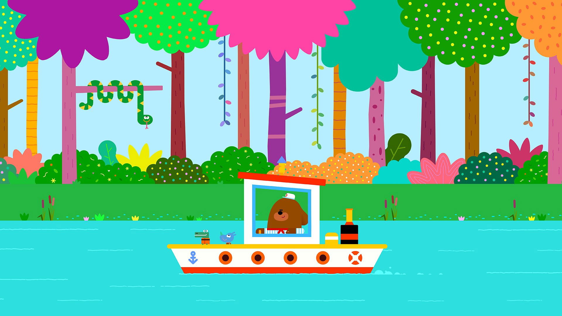 Duggee has a package that needs delivering right to the other end of the river, a long way from the clubhouse. It looks like the Squirrels are going to have a day out on the boat.