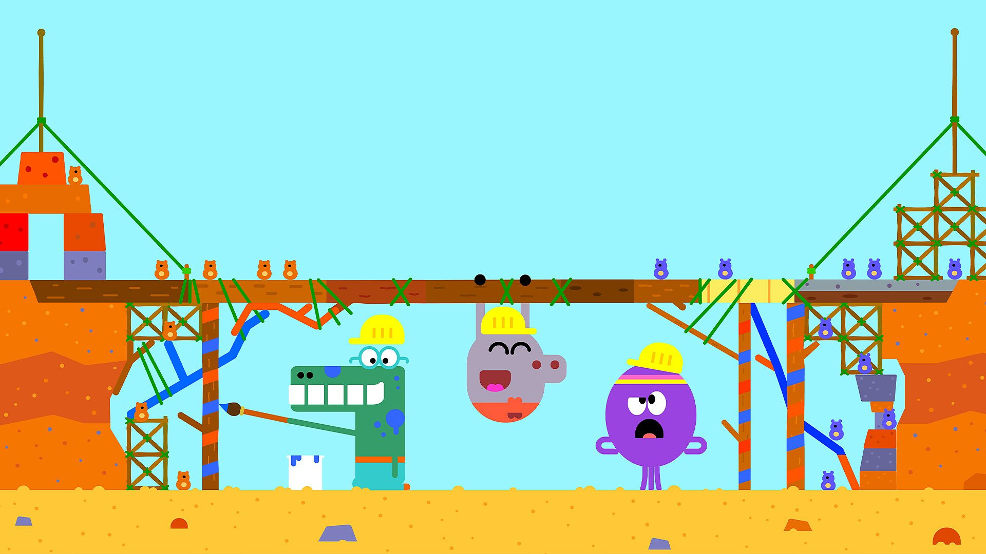 It’s bridge building time. The Squirrels help a quarreling group of Gerbils sort out their longstanding disagreement.