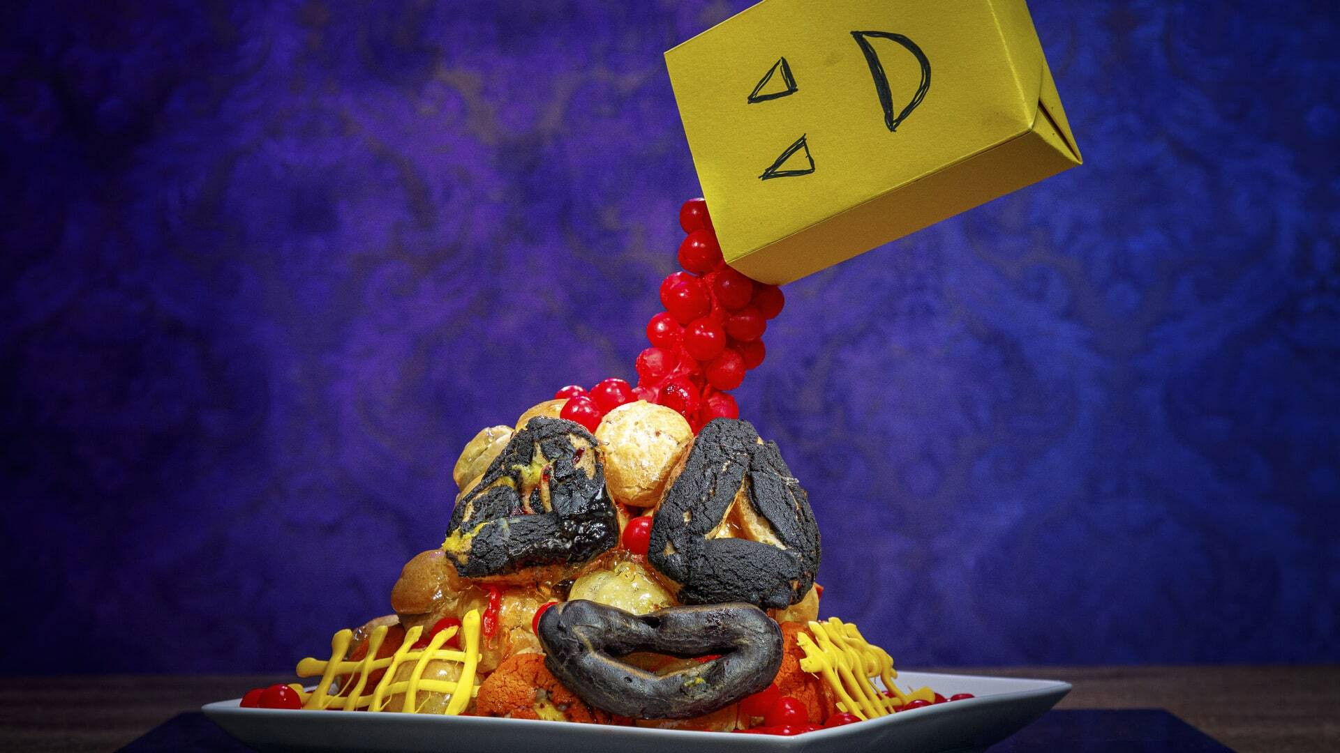 Host Carla Hall meets the nine remaining competitors on the frightening front porch, haunted by eternally disappointed trick or treaters. The bakers are challenged to create Halloween candy croquembouche with a stunningly sweet illusion to impress Carla and the other judges, Stephanie Boswell and Zac Young.