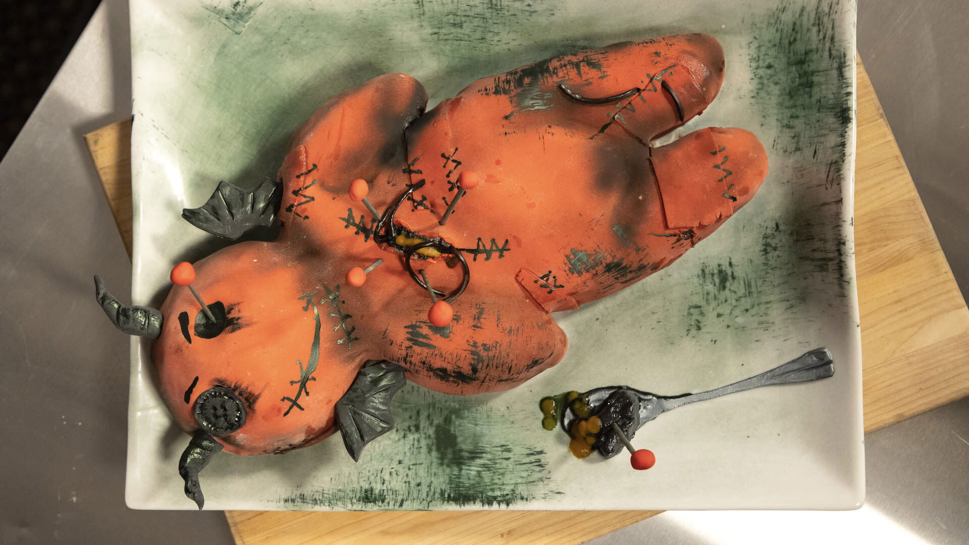 The seven remaining bakers continue their journey through the haunted house to the creepy nursery. Host Carla Hall challenges the competitors to bake 3-D demon doll cakes with a diabolically assigned flavor to be judged by Carla, Stephanie Boswell and Zac Young.