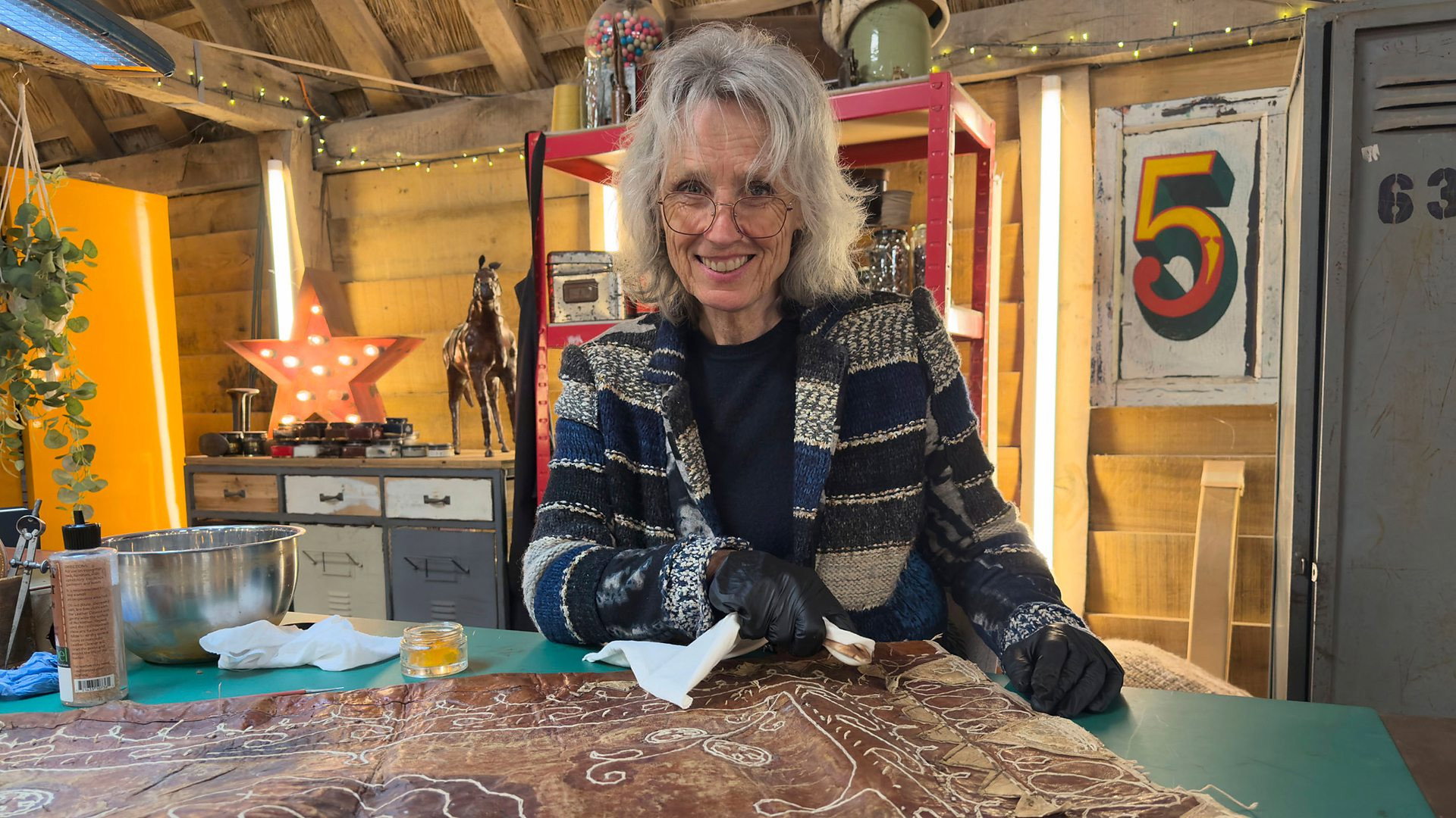 The team restore a silver statuette that survived a shipwreck, a traditional Iranian baby hammock, a remarkable concrete portrait and a flight case once owned by a rock legend.