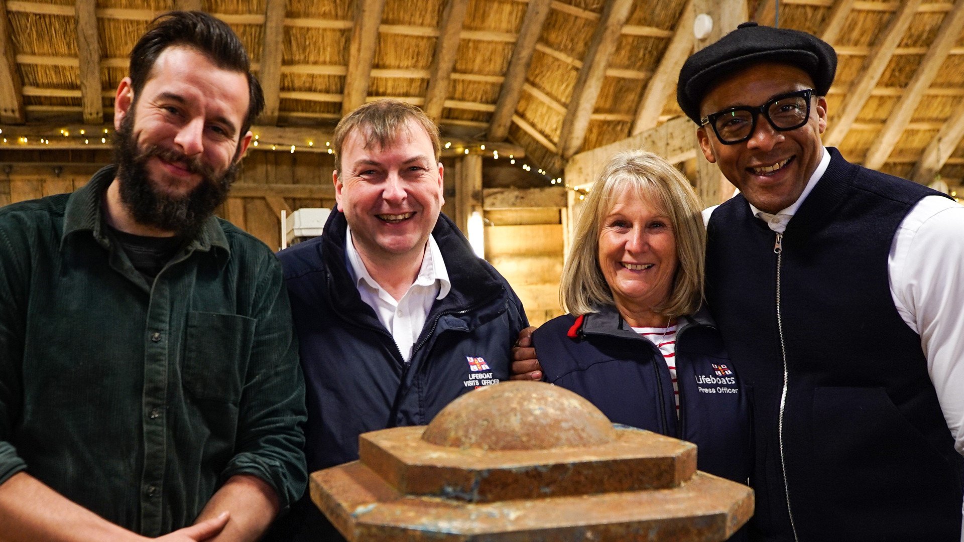 Jay Blades and the team tackle a chair used during the investiture ceremony of the Prince of Wales, an air-powered toy car and a RNLI donation box.