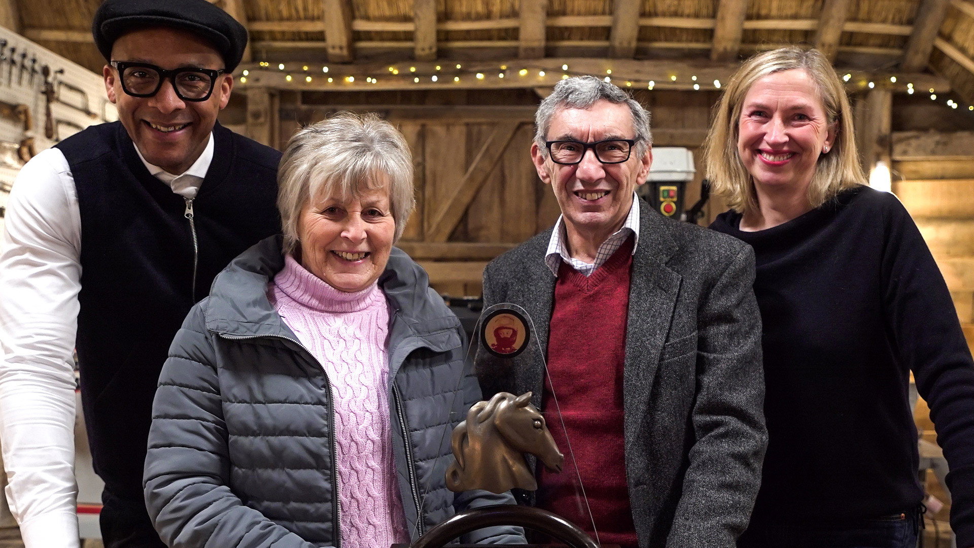 Jay Blades and the team tackle a refugee family's wooden trunk, a memorial trophy and a gyroscopic toy cyclist.