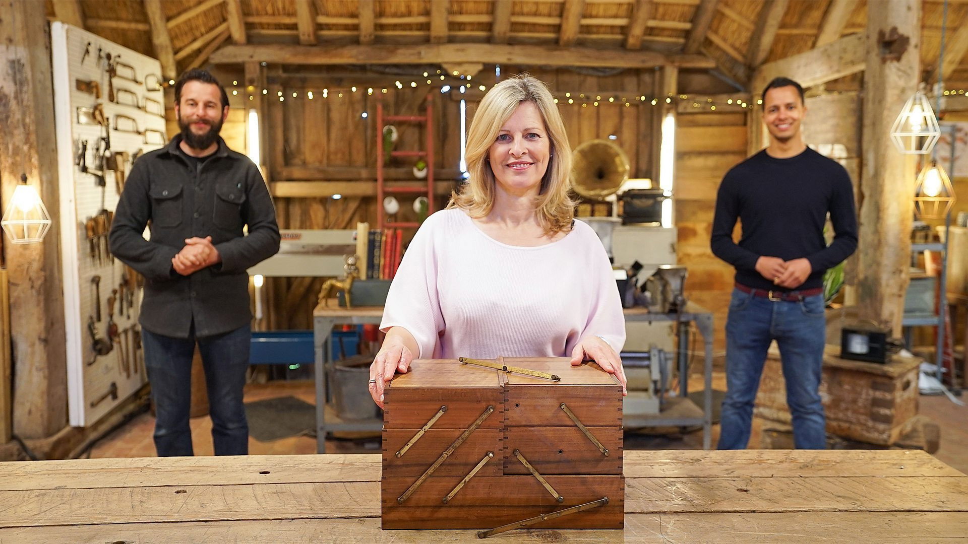 The team restores an Indian dancing doll, a musical menorah and a sewing box.