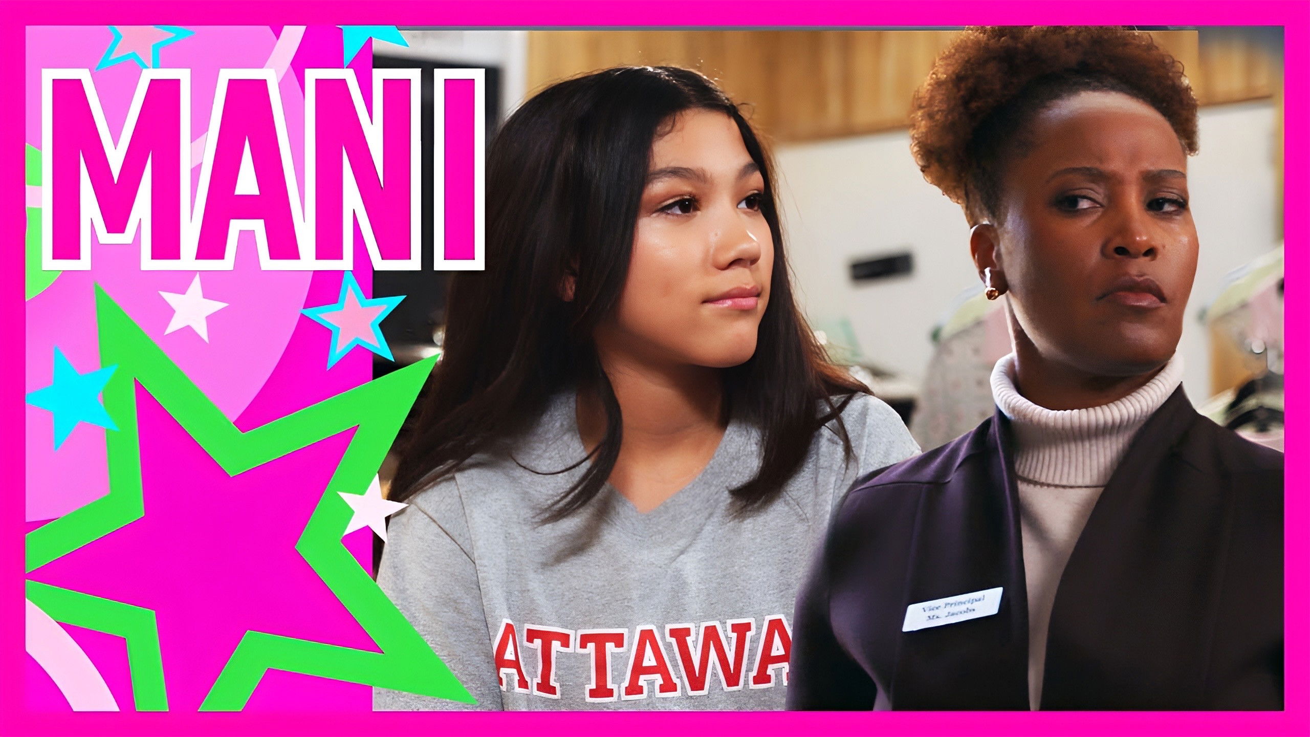 Mani and friends teach Brittany how to throw hands and look fly for the party. Ms. Jacobs closes in.