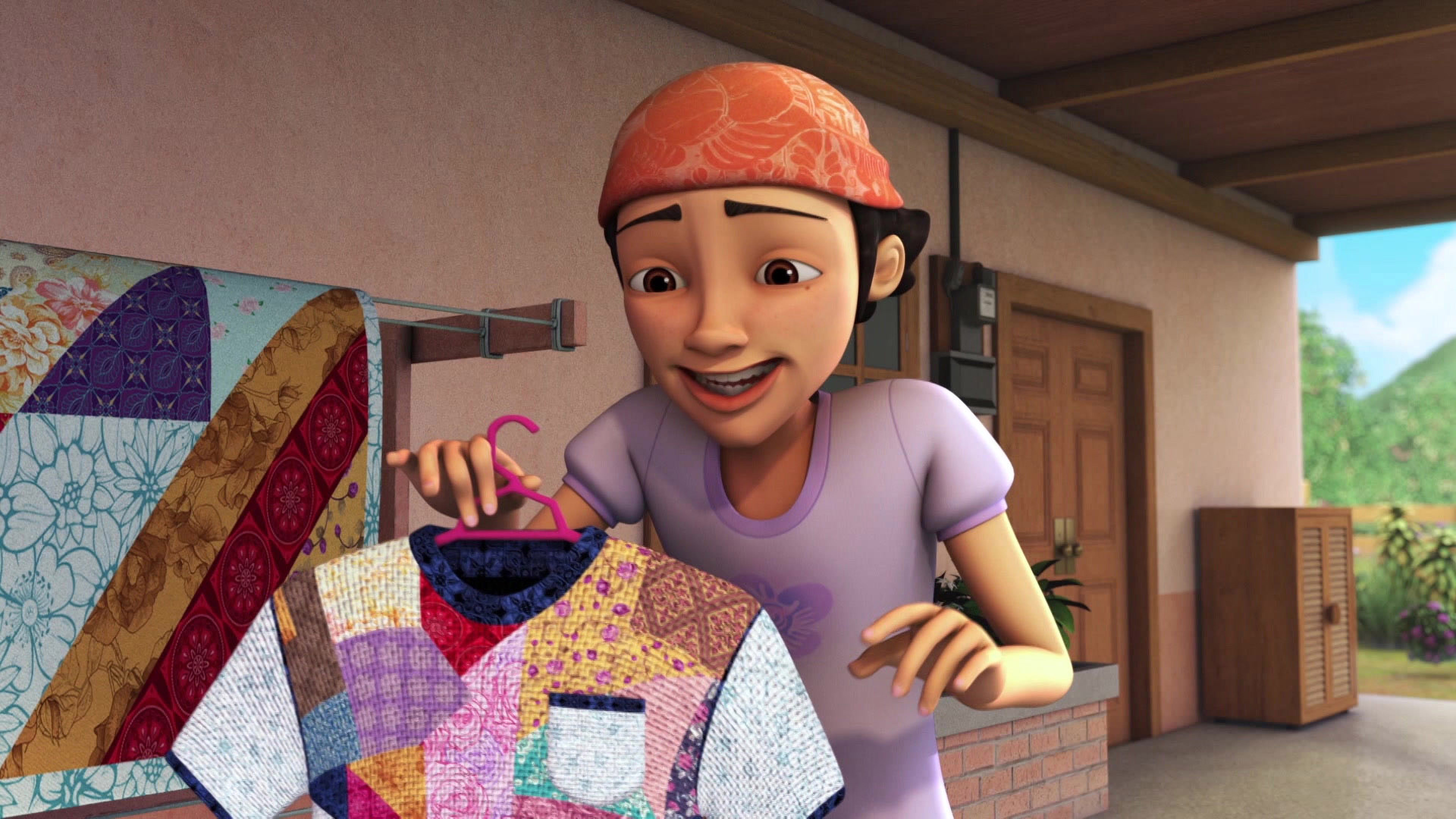 Upin and Ipin help Ros with their spring cleaning and throw out a few boxes of trash, but one of the boxes contain scrap cloths.