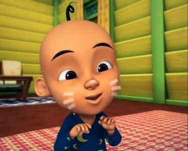 During the first day of school, Miss Jasmin splits the students into three groups and holds a game of charades. Back at home, Kak Ros helps Upin & Ipin wrap their new books.
