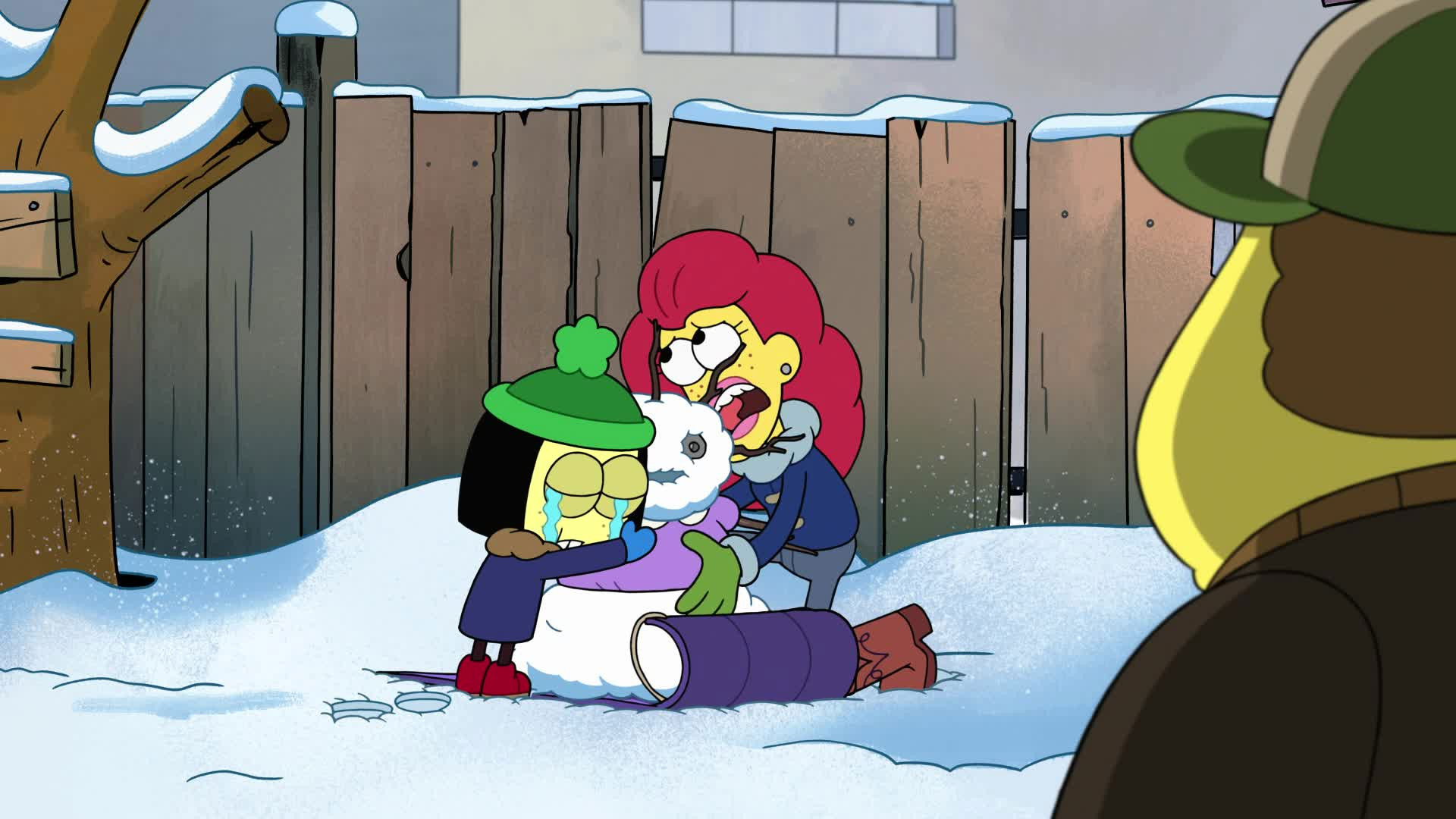Cricket and Remy challenge Vasquez to a snowball fight, while Tilly creates a snowperson.