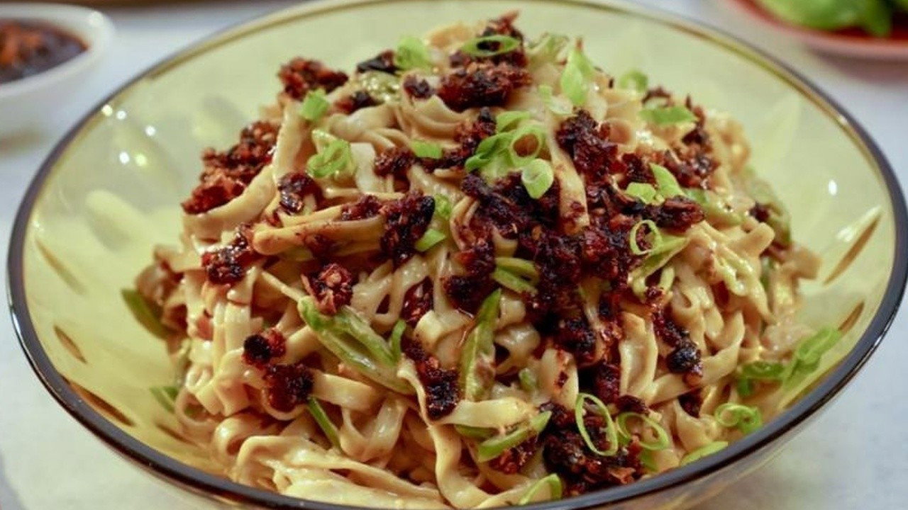 Molly Yeh's coolest cousins are in town, so she's making a Chinese dinner to celebrate! She prepares her mouthwatering Char Siu Meatball Sliders, lucky Long Noodle Pasta Salad coated in a mayo-y Chili Crisp sauce, perfectly salty Soy Sauce Deviled Eggs, and a moist Toasted Sesame Layer Cake for dessert.