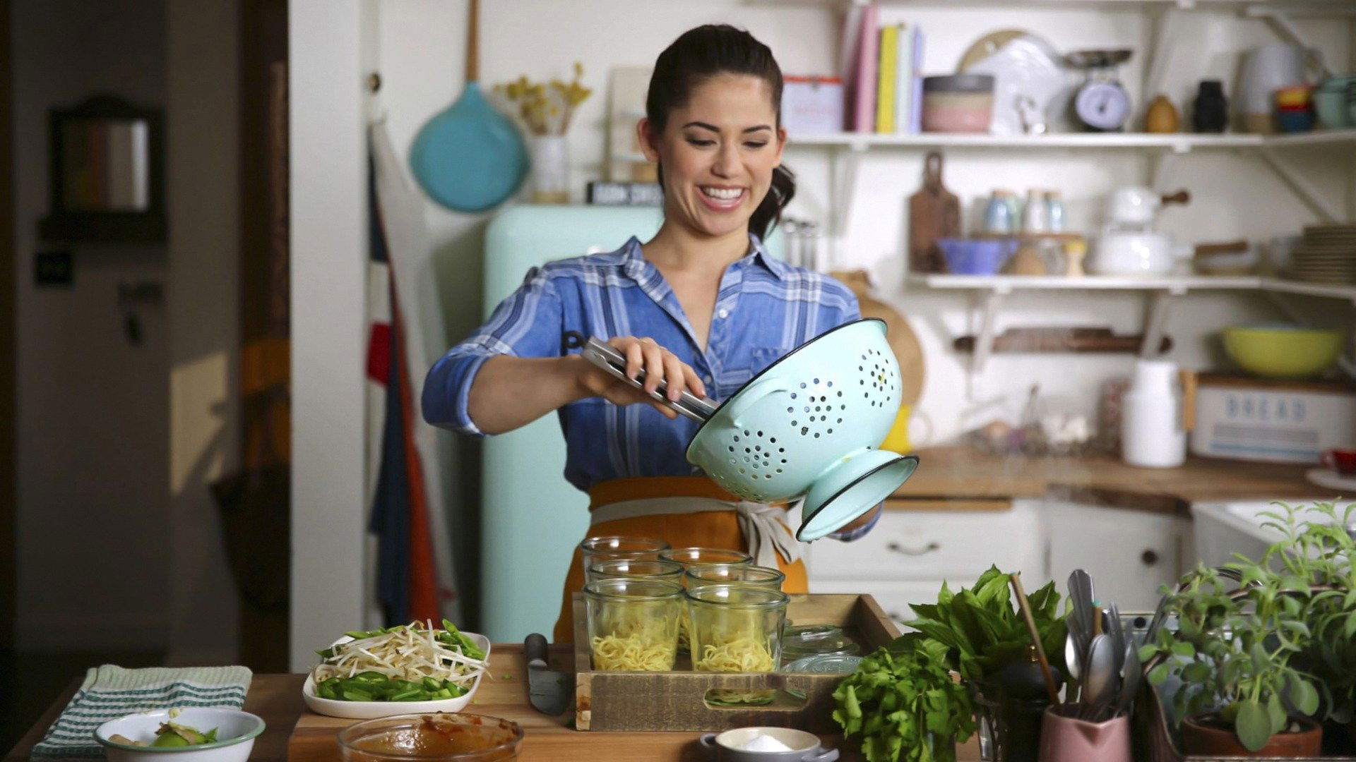 Molly Yeh and her husband, Nick, host a hockey party for their sports-loving friends. She makes all her favorites, including crispy Fried Chicken Sandwiches with super-creamy Chipotle Mayo, Homemade Noodles and, for dessert, Chocolate Mint Sandwich Cookies shaped like hockey pucks.