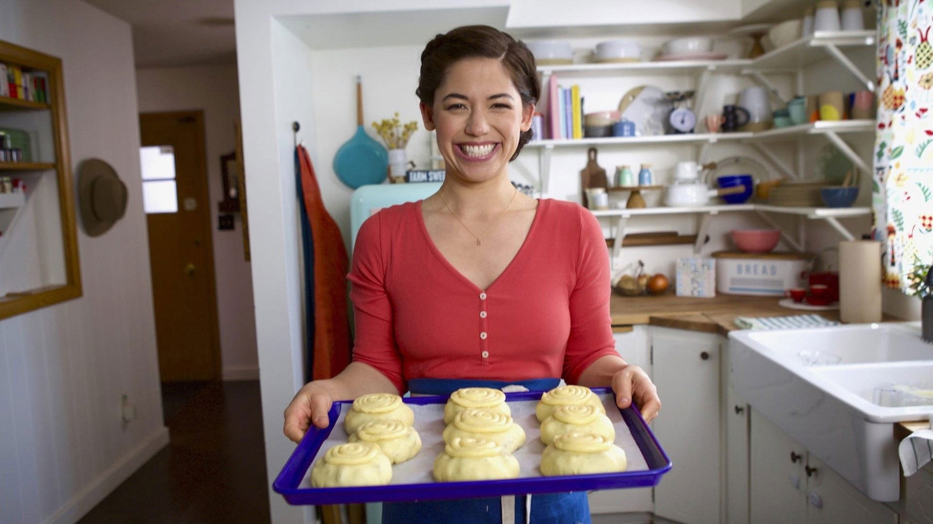 Molly Yeh's dad is in town to play a clarinet concert, and she's making an Asian-inspired lunch of succulent Sugar-Coated Pork Buns and crunchy Drunken Cucumber Noodles to fill him up beforehand. Then, who wants flowers when you can have homemade Matcha Mochi Donuts for a sweet treat after the performance!