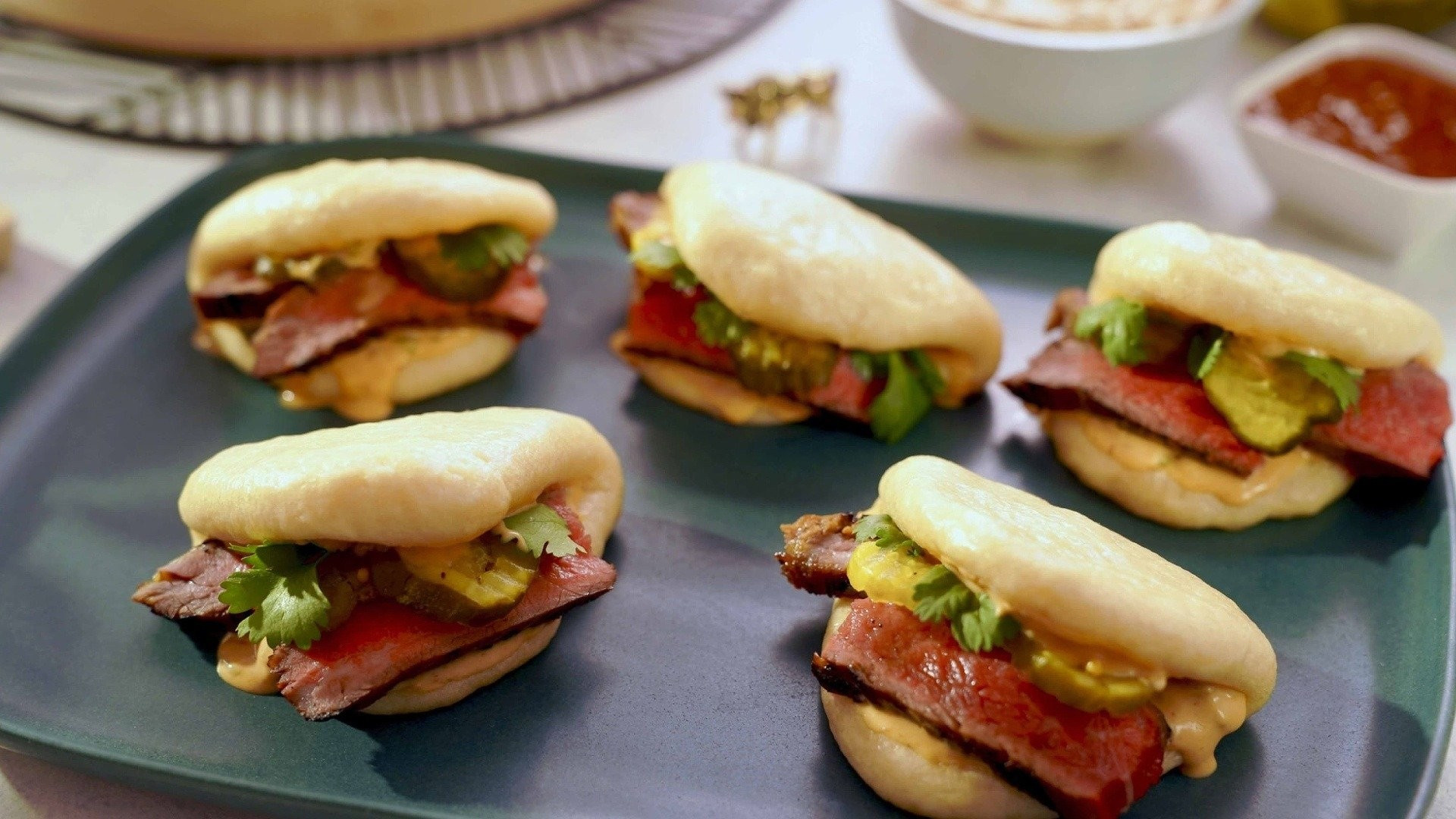 Molly Yeh is making adorable bites of scrumptiousness for a dim sum date night! The menu includes Steak Buns with creamy Peanut Sauce, Crispy Veggie Buns, addictive Shrimp Toasts and Egg Custard Tarts for dessert.