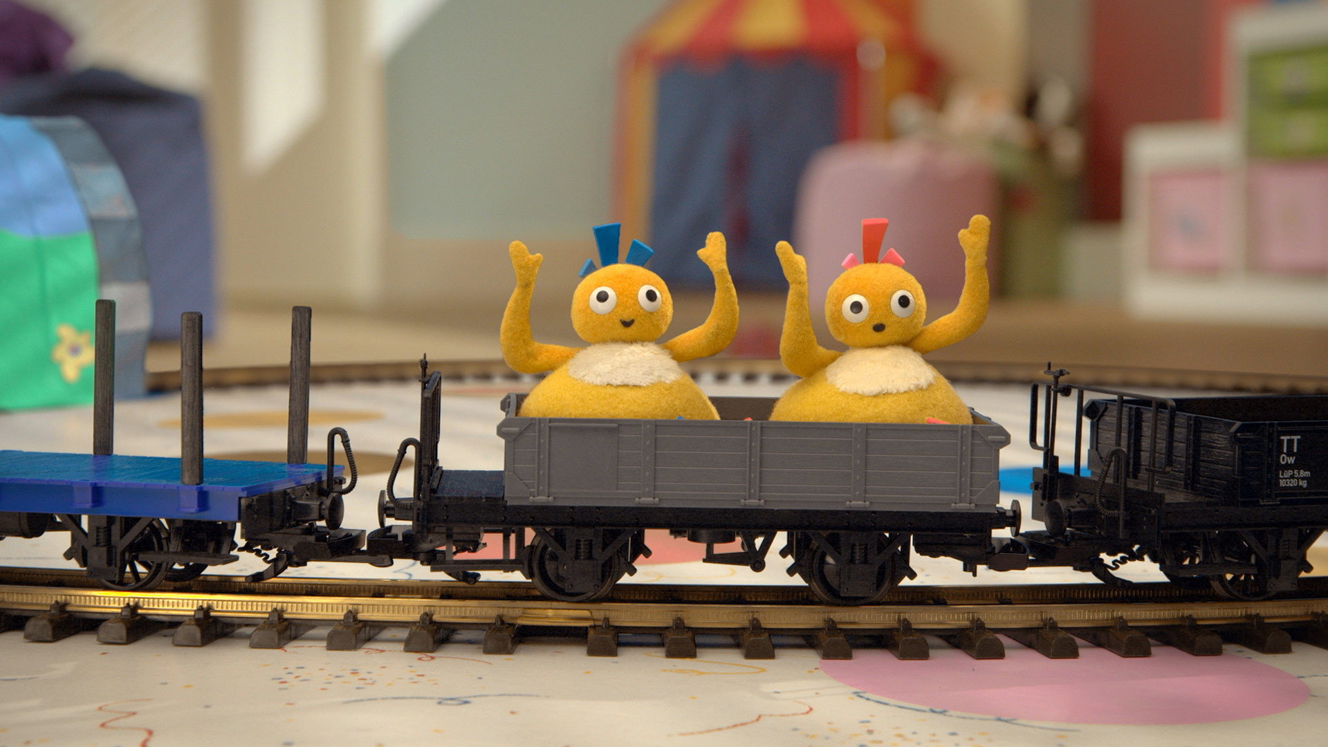 The Twirlywoos find out what happens when a toy train goes into a tunnel, and have some trouble with disappearing tea.
