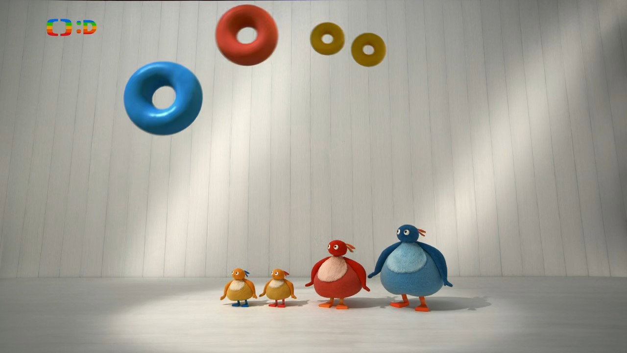 The Twirlywoos watch an athlete going over some hurdles in a field and decide to try going over them themselves.