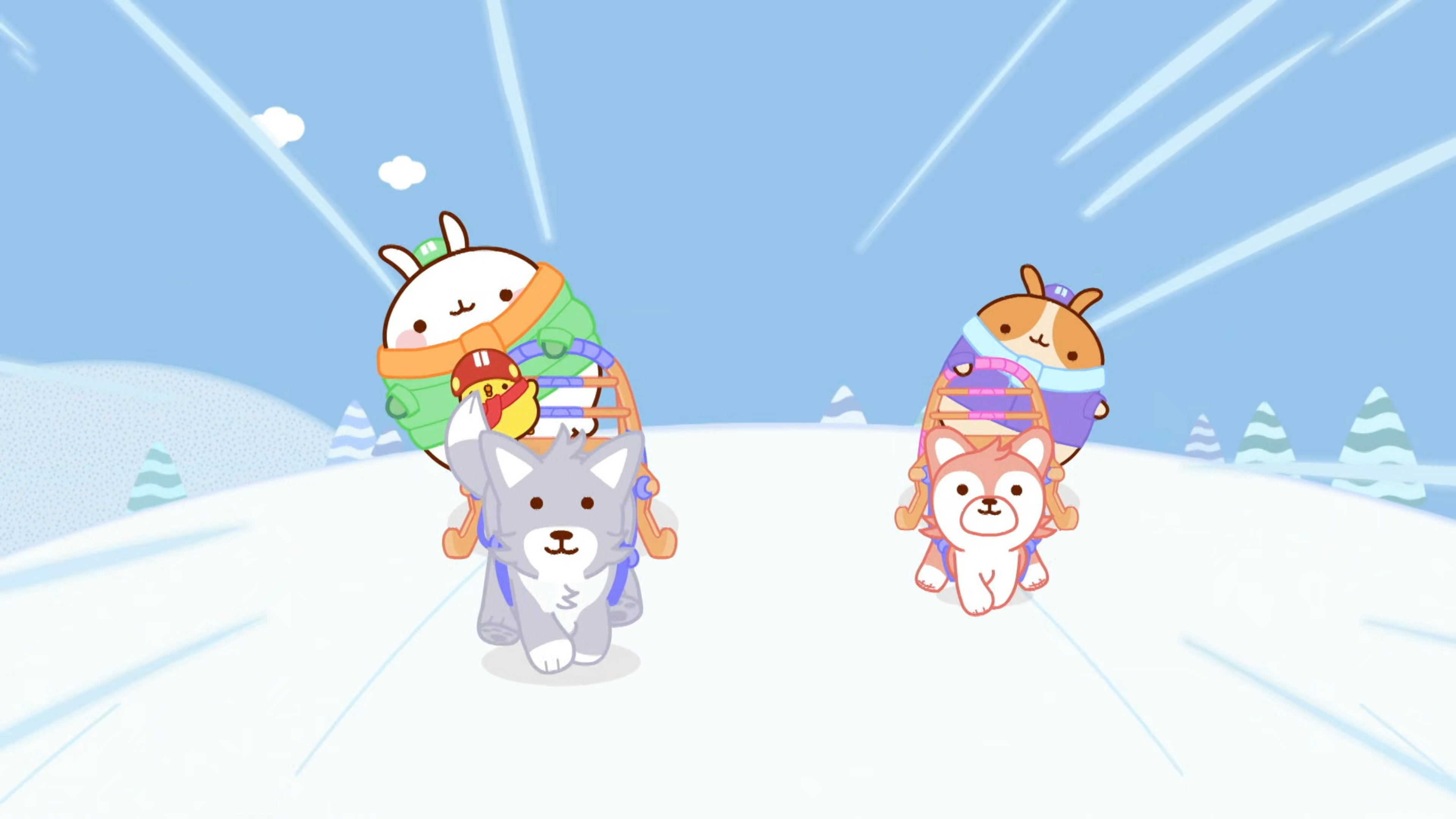 After discovering an abandoned puppy in the far north, Molang and Piu Piu train it to become a sled dog.