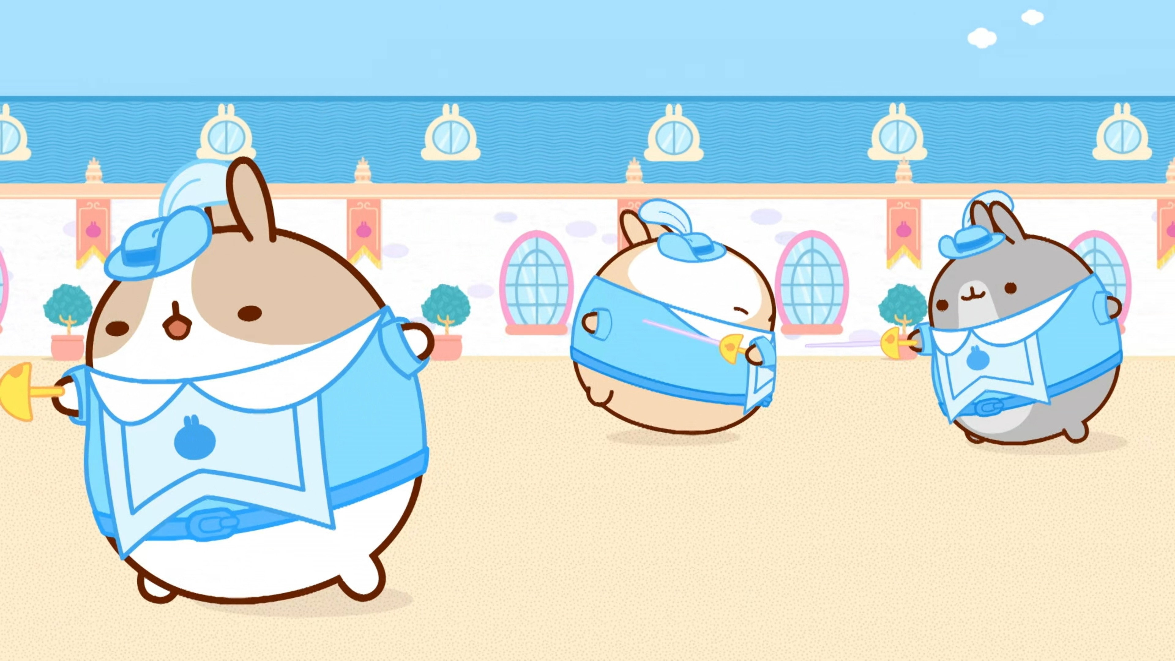 When Piu Piu and Molang come to deliver some vegetables to the musketeers, the aforementioned are called to the rescue of the king. Molang and Piu Piu don't hesitate to follow them.