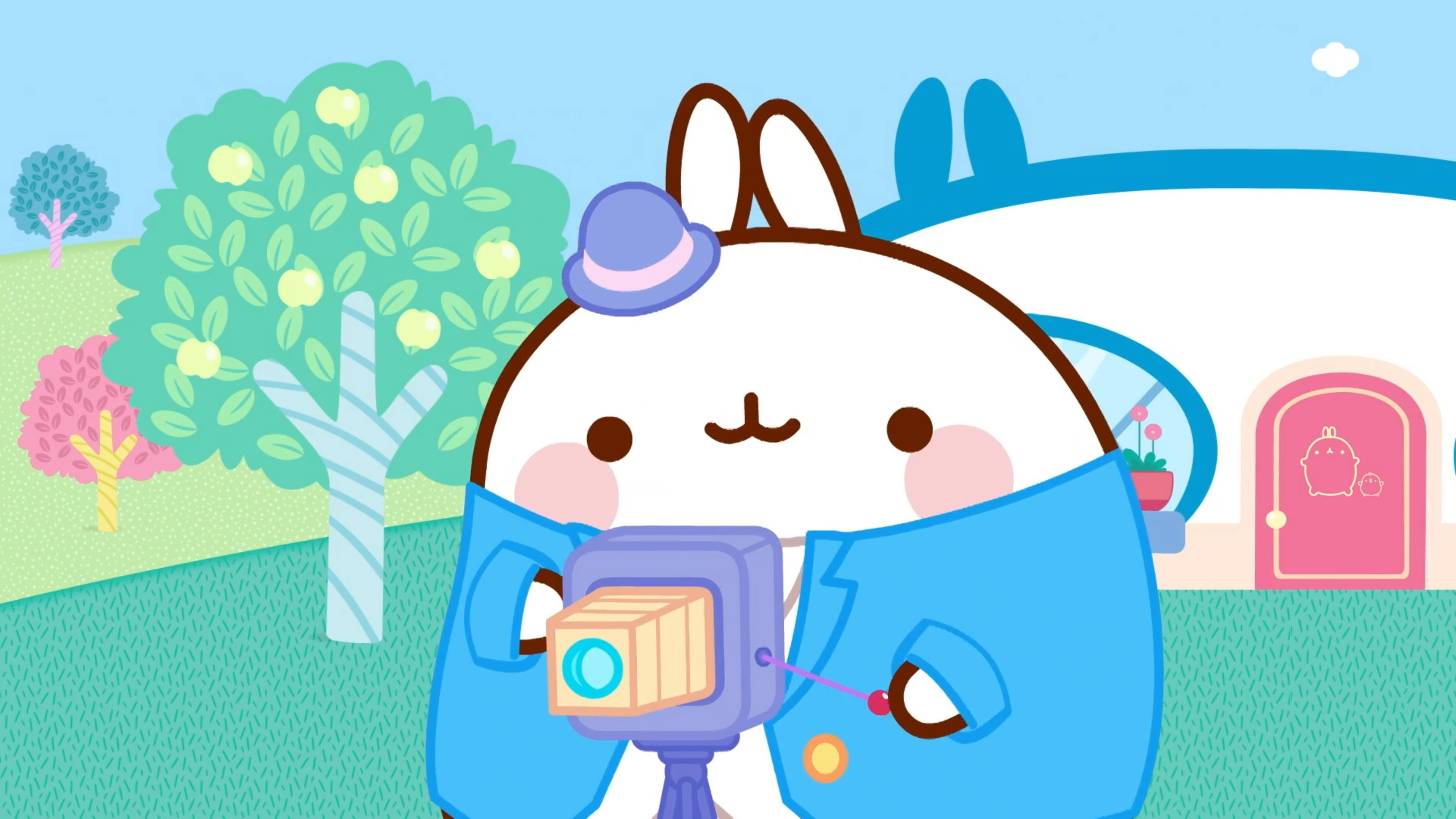 Molang possesses one of the very first cameras of its time. With much enthusiasm, he photographs all that he sees around him.