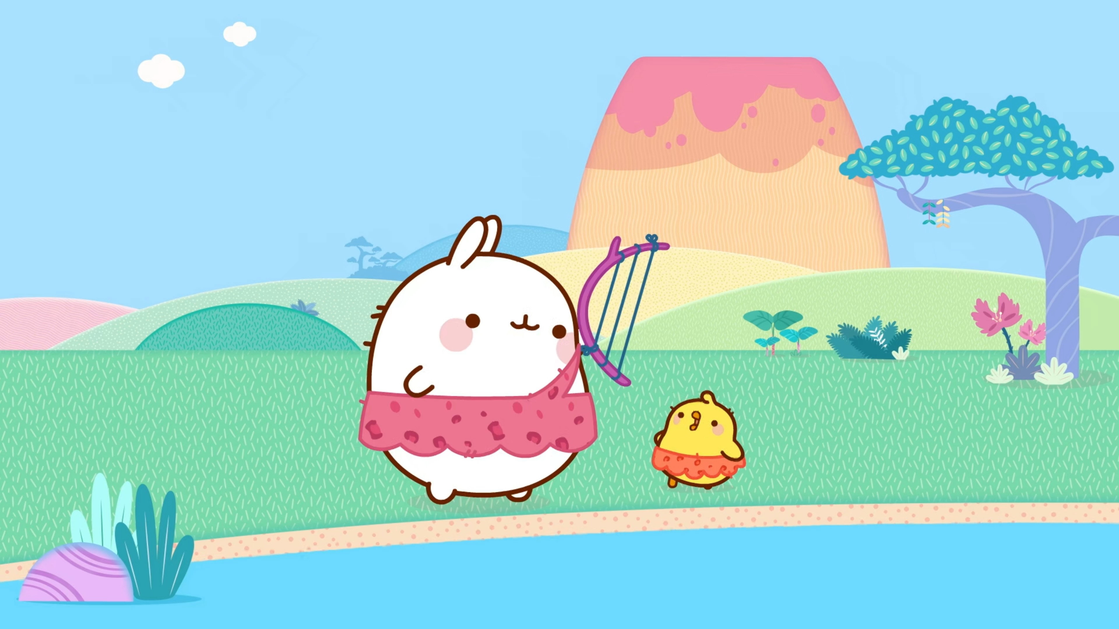 Molang and Piu Piu are strolling in the Savana when a volcano starts to grumble. Persuaded that the volcano is about to erupt, they attempt to warn the animals, but they don't want to follow them.