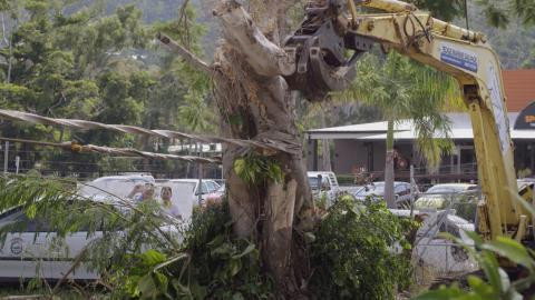 Team Salvage is towing a damaged yacht to a North Queensland boatyard. The vessel has a broken keel, no steering capacity and it's taking on water.
