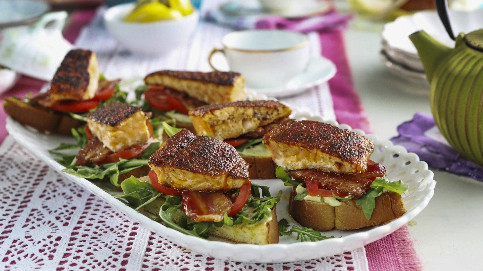 Kardea Brown is getting married, and her friends and family are throwing her a bridal shower. As every cook in the family does, she brings her own bites of Open-Faced Mini Salmon BLTs, Smoked Ham Salad in Lettuce Cups, Deviled Eggs with Fried Shrimp and Chocolate Coconut Nests.