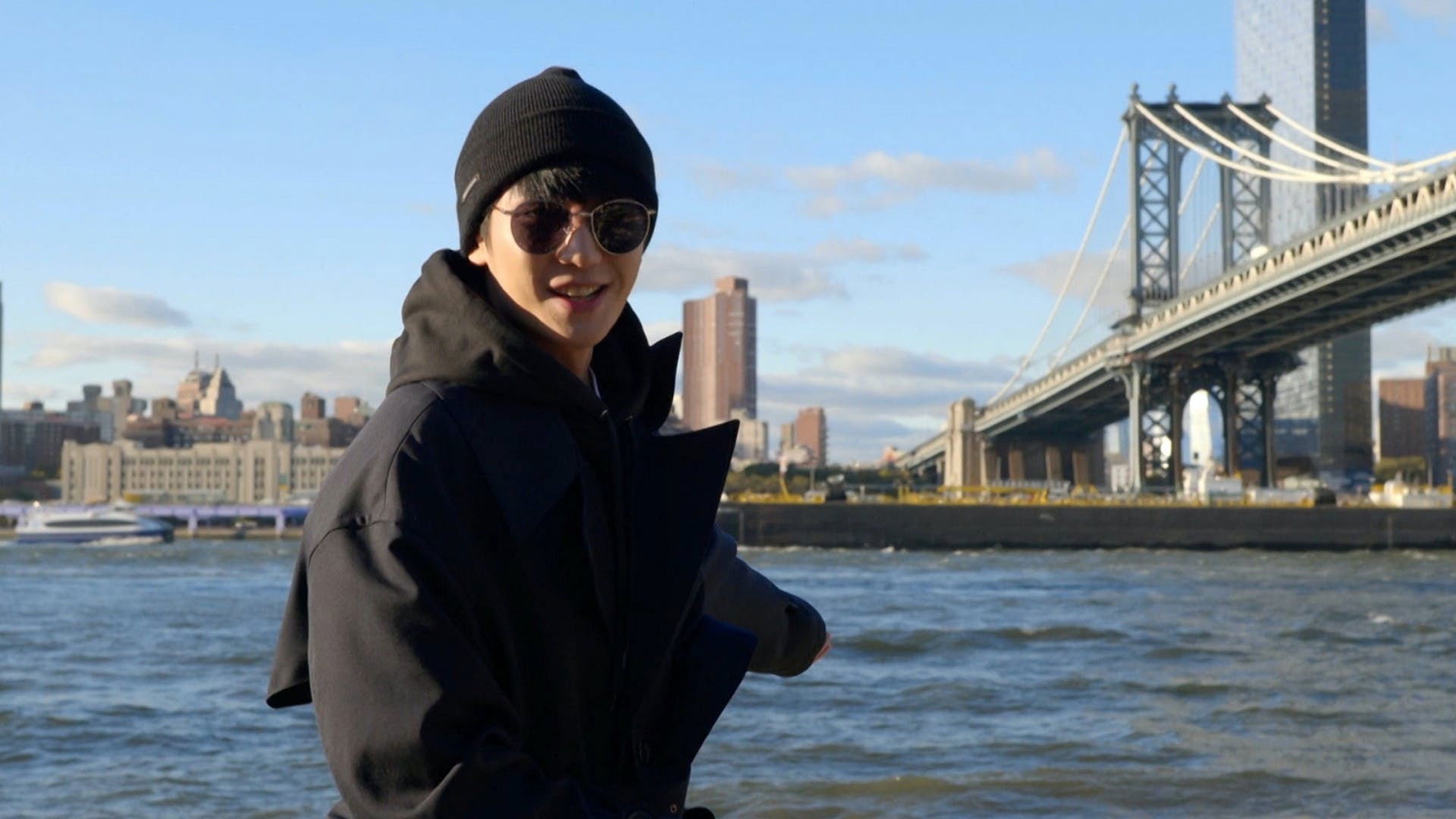 Hae In and his friends head to the Brooklyn Bridge. They cross the bridge and enjoy the great view. Hae In explains the history of the bridge, and they find amazing photo spots. After having lunch, they head to the DUMBO, Pebble Beach, and the Wall Street. They make wishes in front of the Charging Bull and wrap up the day with beer.