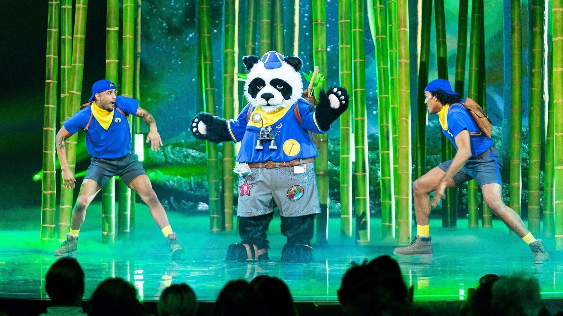 Joel Dommett introduces six more masked singers, Rockhopper, Traffic Cone, Poodle, Snow Leopard, Panda and Bagpipes, as panellists Rita Ora, Jonathan Ross, Davina McCall and Mo Gilligan attempt to guess who's behind the mask.